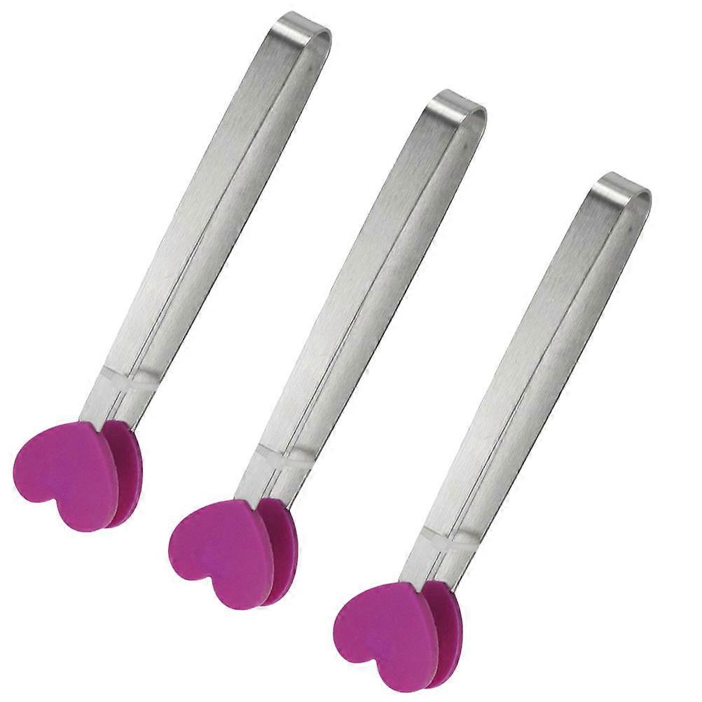 Purple Heart-Shaped Food Clips with Stainless Steel and Silicone 3pcs for Kitchen Use Lightweight