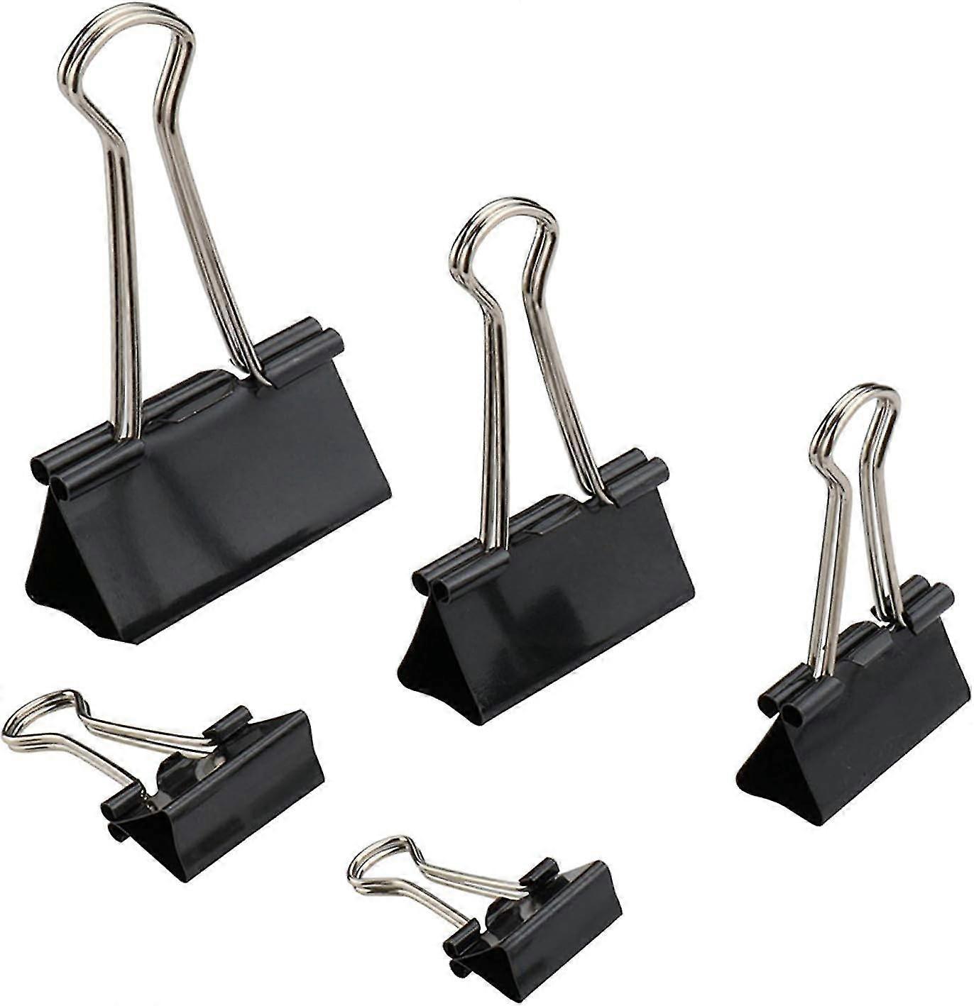 Double Clip Clips - 60 Pack Foldback Metal Paper Clips Binder Clips for Notes Letter Paper Clip Office Supplies, 5 Assorted Sizes, Black