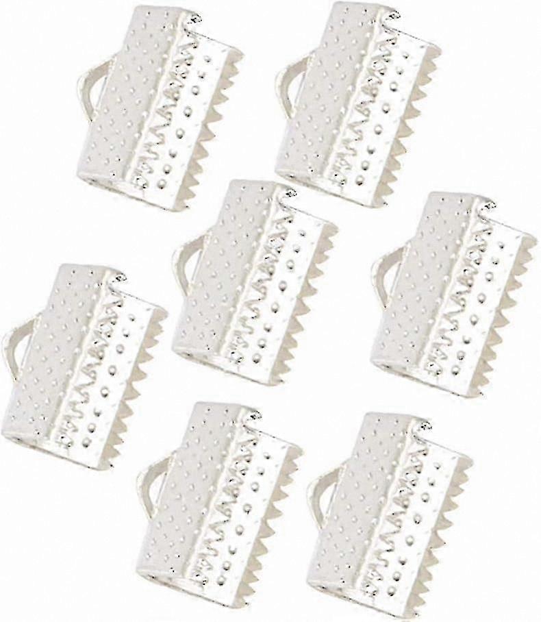 Silver Metal Clasps for DIY Jewelry Crafting, 2cm Ribbon Ends, Cord Crimp Ends for Leather Craft Projects