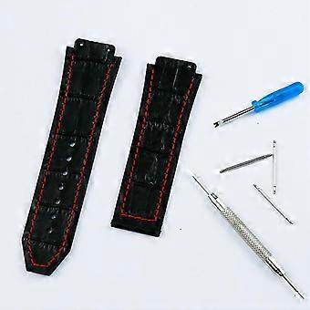 مشاهدة الملحقات حزام جلدي للرجال 19 مم × 25 مم لسلسلة Hublot أزياء الأعمال 22 مم مشبك السيدات المطاط حزام رياضي أسود الخط الأحمر