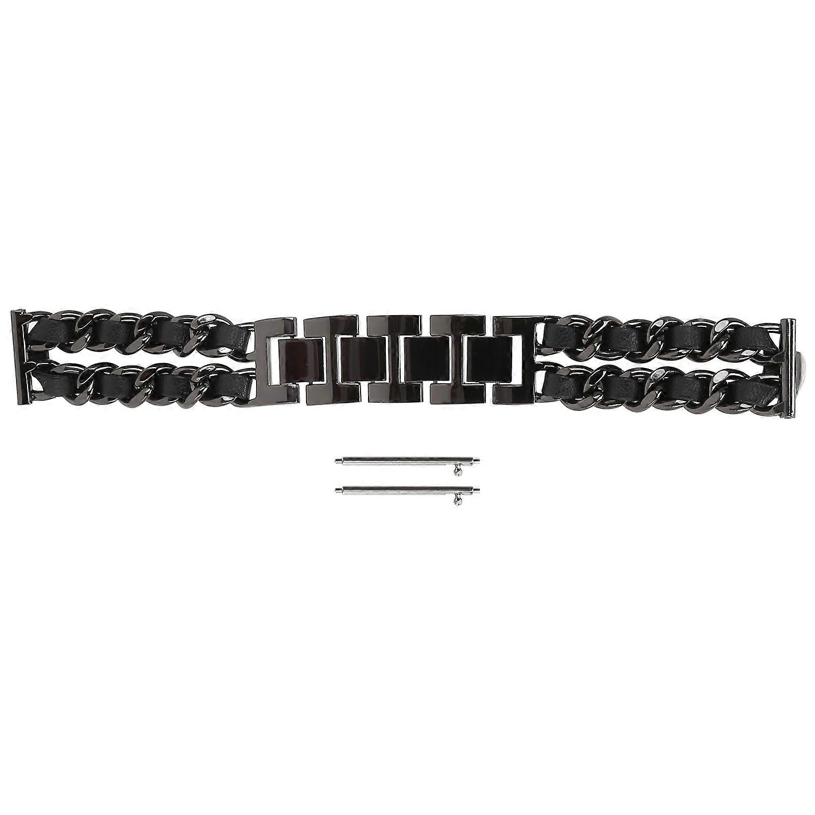 Watch Strap Metal Double Chain Replacement Band Compatible For Huawei Watch 22mmblack Leather