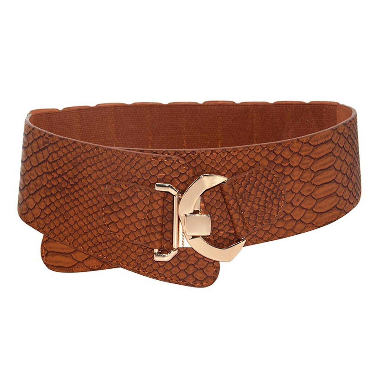 Diagonal Buckle Wide Women Belt Faux Leather Elastic Overcoat Belt Clothes Ornament