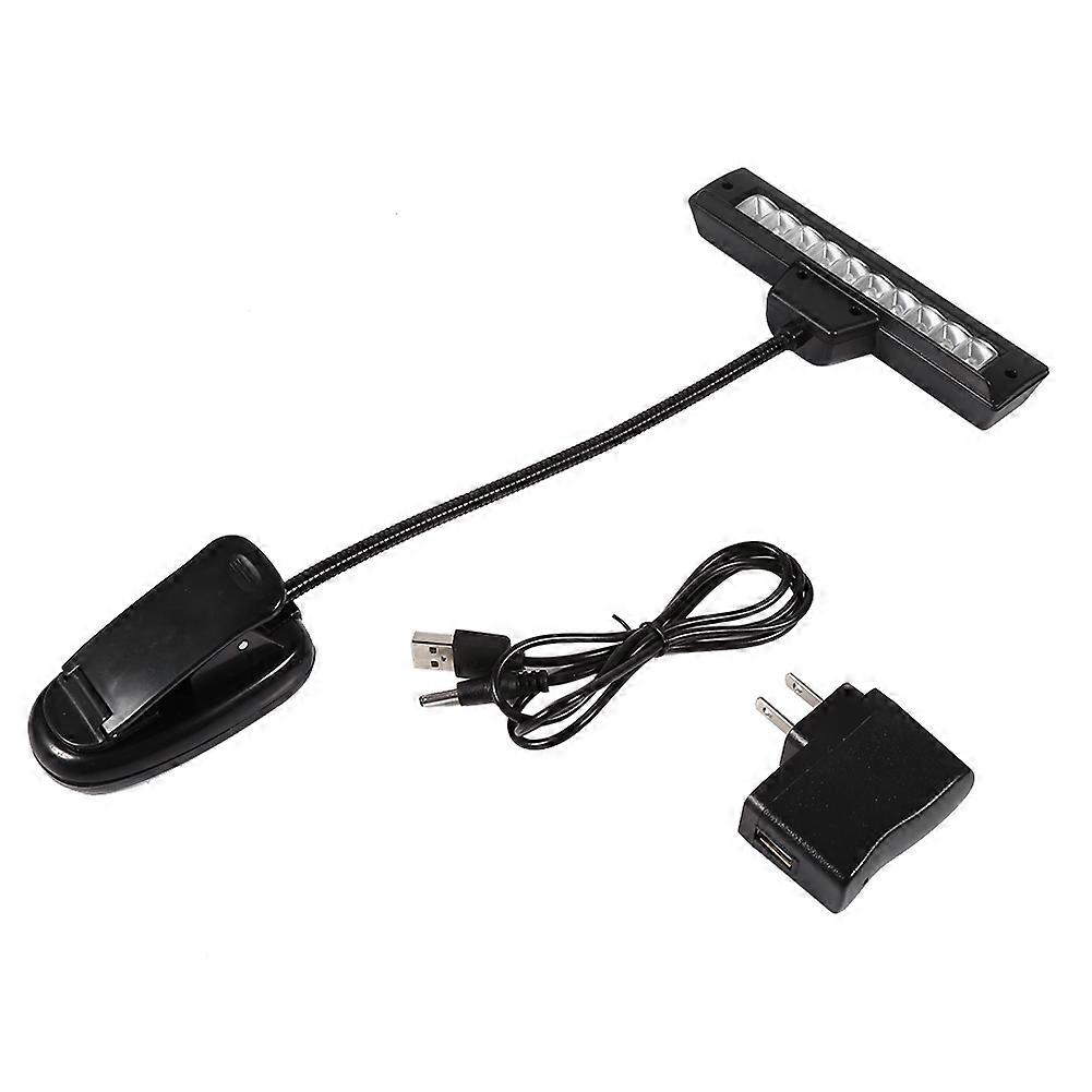 D escription: This item has high brightness with a large area of illuminations, which can spread light evenly on the your music sheets. Free and adjustable arm can be bent randomly, free to choose the area to be illuminated. It can stand on desk with the base as normal desk lamp and also available to clip almost anywhere and any angle with its anti-skid clip. Suitable for music stands, pianos, orchestra pits, desks, tables, dark clubs, etc. It is portable and lightweight, thus you can take it with you while traveling, it is easy to carry and can be powered. Features: High brightness with a large area of illumination, spreads light evenly on the your music sheets. Free and adjustable arm can be bent randomly, free to choose the area to be illuminated. It can stand on desk with the base as normal desk lamp and also available to clip almost anywhere and any angle with its anti-skid clip. Suitable for music stands, pianos, orchestra pits, desks, tables, dark clubs, etc. Portable and lightweight: take it with you while traveling, it is easy to carry and can be powered. Specification: Condition: 100% Brand New Color: Black Type: Lamp +USB Cable + Adapter Material: Plastic & Metal Light Source: 10 LED Battery Type: 3 x AA Batteries (not included) Input: AC 110-220V LED Lamp Width: Approx. 14cm / 5.5inch Gooseneck Length: Approx. 28cm/ 11.0inch Clip Size: Approx. 9 * 6cm/ 3.5 * 2.4inch Product Weight: Approx. 190~215g Type 2 Package Included: 1 x Lamp 1 x USB Cable 1 x Adapter .