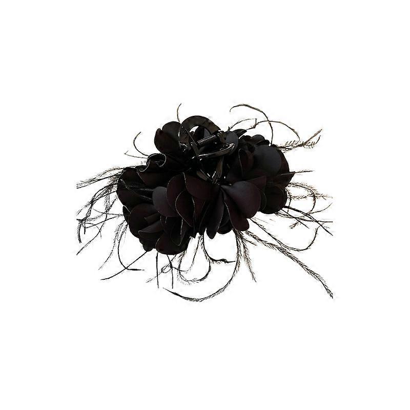 Red Multi-layer Ruffled Feather Hair Claw Clip, Shark Clip for Back of Head, Princess Style Elegant Hair Accessory