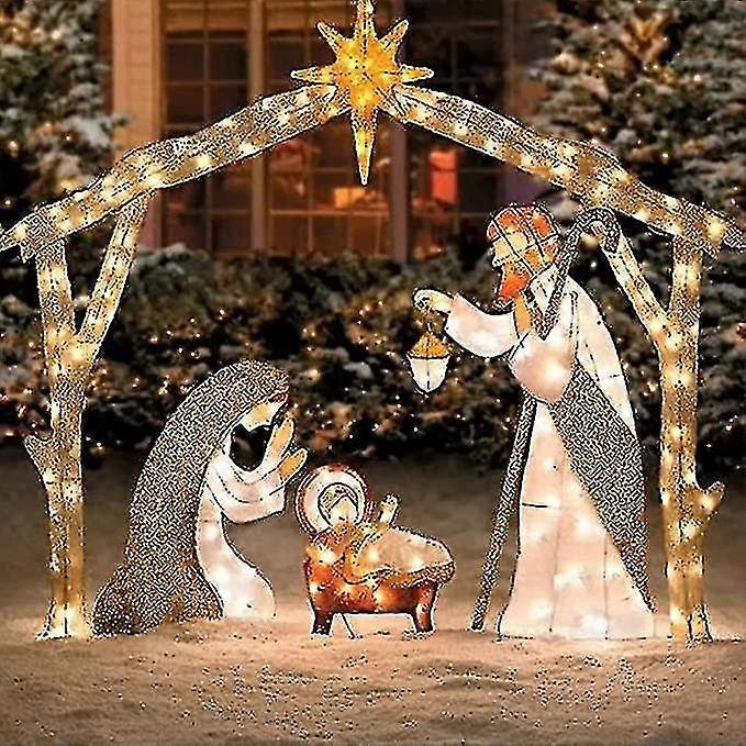 Outdoor Nativity Scene with LED Lights, Holy Family Christmas Yard Decor Set for Garden, Patio, Holiday