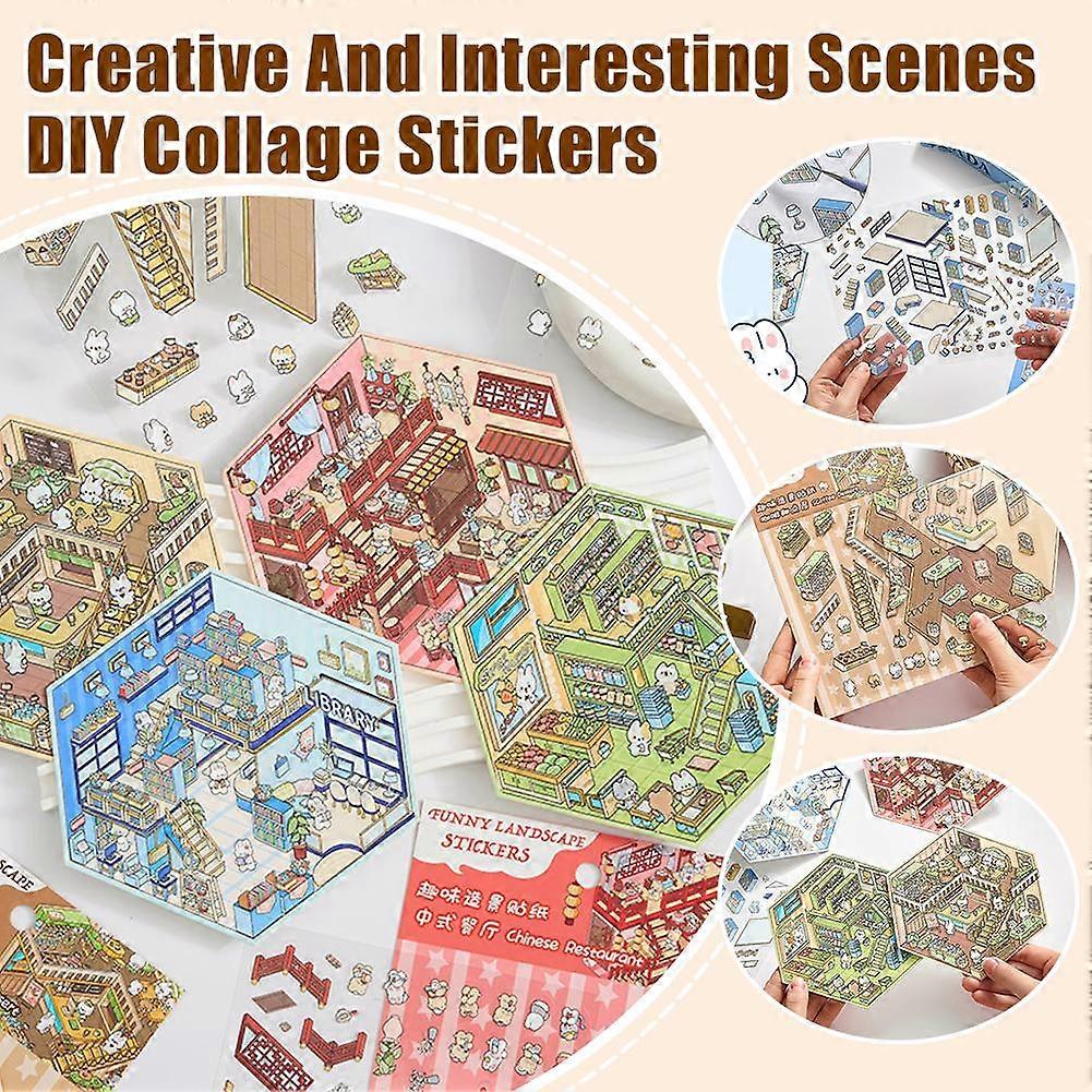 Miniature Scene 3D Landscaping Stickers Miniature Scene Sticker DIY Cabin Set