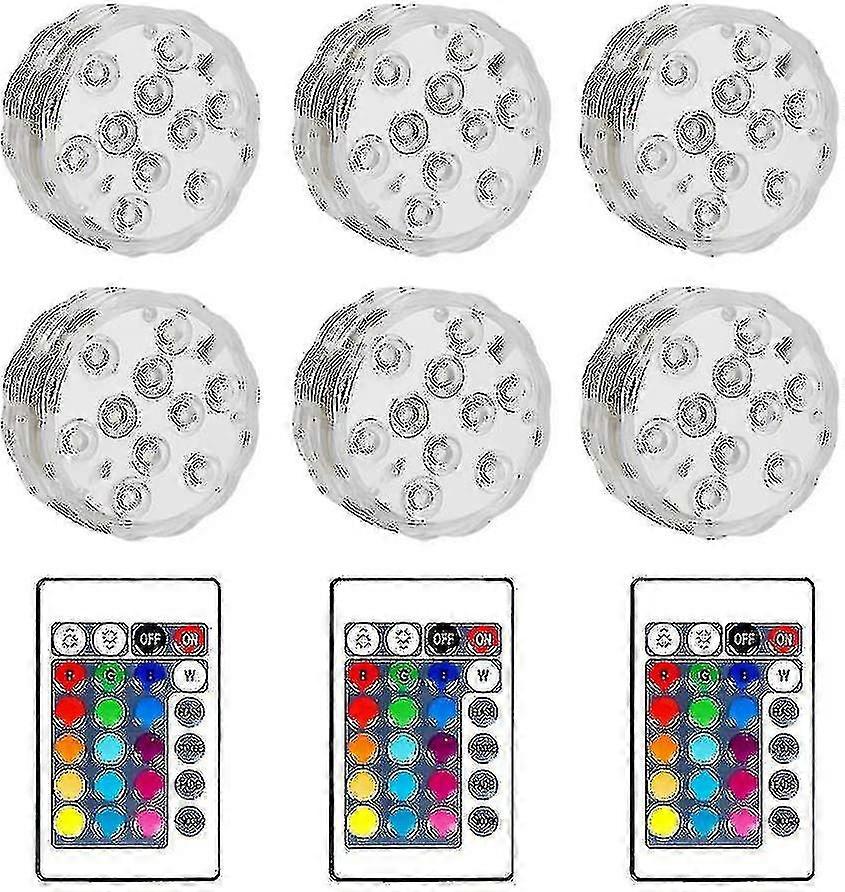 create An Atmosphere: 16 Color Changing Rgb Led Lights Such As Red, Green, Blue, Purple, Yellow, Etc., 3 Dynamic Modes. Multi-color Rgb Led Lights Can Be Turned On Or Off By Remote Control, Using Submersible Led Lights As Decoration Lights Can Create A Soft Atmosphere When You Have A Party With Your Friends. This Water Resistant Light Will Bring You More Fun. multifunction: They Can Be Used For Party / Event Lighting, Holiday Accent Lighting, Indoor And Outdoor Lighting, Accent Lighting, Floral Design, Transparent Cover, Event Design. Also Suitable For Wedding, Party, Stage, Halloween, Christmas, Nightclub, Shopping Mall, Jewelry Store, Showroom, Showcase, Cabinet, Museum, Store, Aquarium, Light Bulb. Home, Etc. waterproof And Reusable: 100% Waterproof, Perfect For Lighting Up Vases, Bowls, Led Bath Toys Or Any Container Filled With Water. This Underwater Light Can Turn A Boring Bowl Into A Beautiful Centerpiece. ip68 Waterproof: Ip68 Waterproof, Please Make Sure The Seals Are Put In The Right Position, And Close The Light Closed. When You Open The Cap If There Are Water Stains On The Wires Or On The Light Body, Note To Wipe It Off To Prevent Water From Dripping Into The Battery Compartment. battery Power: These Underwater Led Lights Are Powered By 3 X Aaa Batteries, They Will Work 12-16 Hours. Bright Lights Use 3 Aaa Batteries (not Included). Tip For Low Battery Warning. submersible Led Lamps - Party / Event Lighting (flower Arrangement, Table Settings, Ice Sculptures, Crystal Vases, Etc.). - Holiday Accent Lighting (swimming Pool, Pond, Ice Bucket, Fountain, Waterfall, Etc.). - Home Accent Lighting (indicator, Night Light, Fantasy Light). characteristics : power: 2.4 W dimensions: 7.1 X 2.8 Cm. batteries: 3 Aaa Batteries (not Included). led Source: 10 Smd Led Diodes. battery For Infrared Remote Control: Cr2025 Button Cell Batteries (included). infrared Controller: 16 Different Static Colors, Press The Color Button On The Remote Control To Select The Color. brightness: Press The Up Or Down Button To Increase Or Decrease The Brightness Of The Static Light. dynamic Color Changing Effect: Select Strobe After Selecting The Desired Colors (4 Upper Colors And 3 Lower Colors). For Dynamic Effects, Select From Fade, Flash And Smooth To Display Changing Colors In Default Order. warning : 1. The Bottom Unscrews With A Rubber O-ring To Prevent Water From Getting Inside. So Tighten The Cap (clockwise Rotation) Until You Can No Longer Place It Under Water. Water Can Erode The Lumen Quickly If The Cap Is Not In The Tightest Position. 2. Lighting For Special Occasion Only. Please Remove It From The Water After The Events. Do Not Leave Under Water For More Than 10 Hours. 3. The Continuous Use Time Of The Battery May Be More Than 24 Hours (the Working Mode Of Different Results May Be Different). When The Battery Is Depleted, The Lights Will Stay Stuck In Red. If You No Longer Change Between Colors And The Remote Does Not Control, At This Time Just Replace The Battery, You May Solve The Problem. contents: 2 Submersible Led Lights + 2 Remote Controls.",