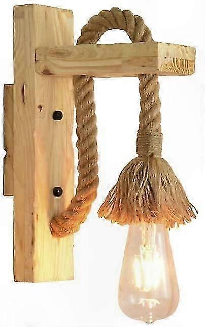 Rustic E27 Wall Lamp with Hemp Rope and Wood for Cafe Hotel Restaurant Lighting Fixture Warm Light Vintage Edison Bulb Holder Decorative Indoor