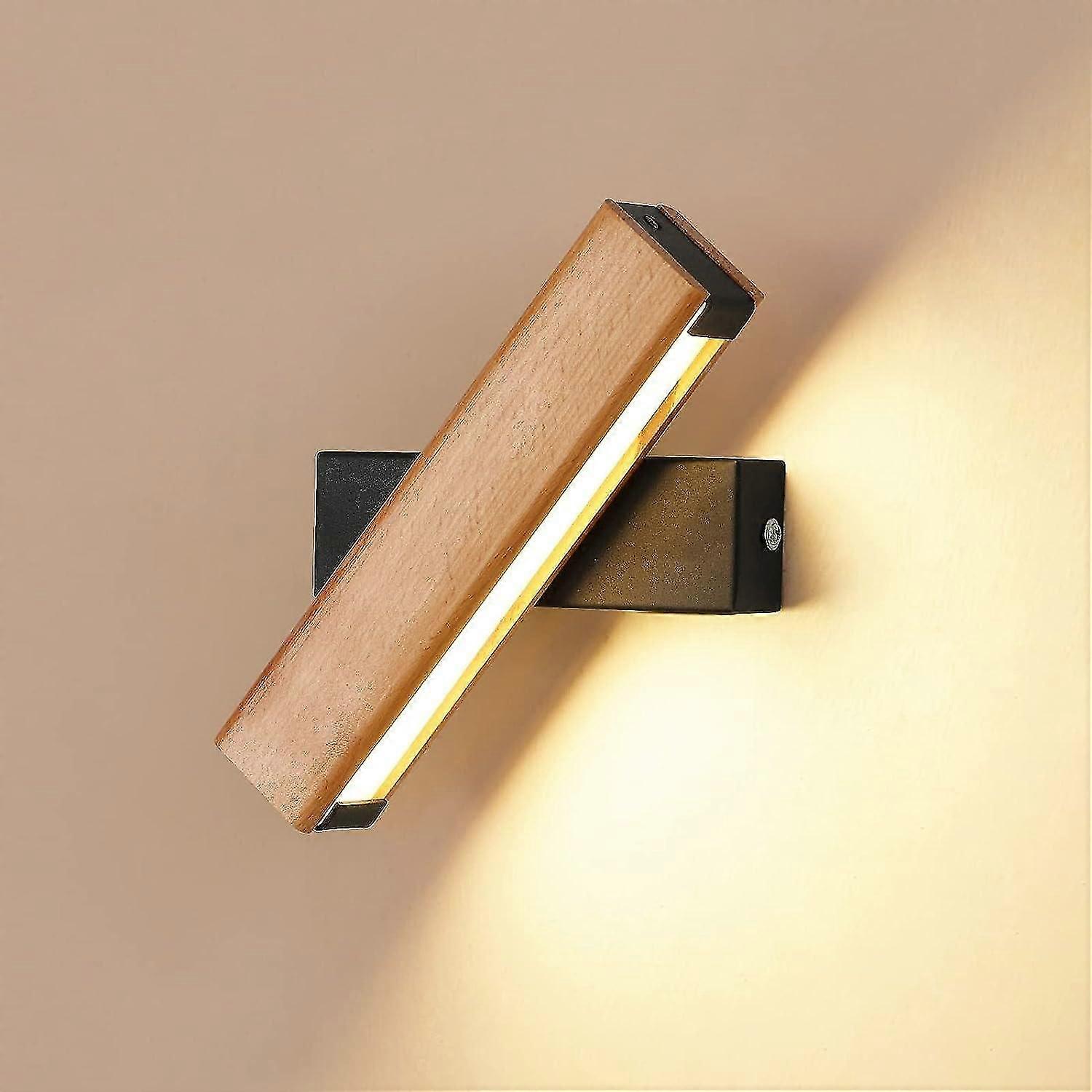 LED Wall Light, 4W 400LM Indoor Wooden Wall Light 360 Rotatable, 3000K Warm White Wall Lamp for Bed