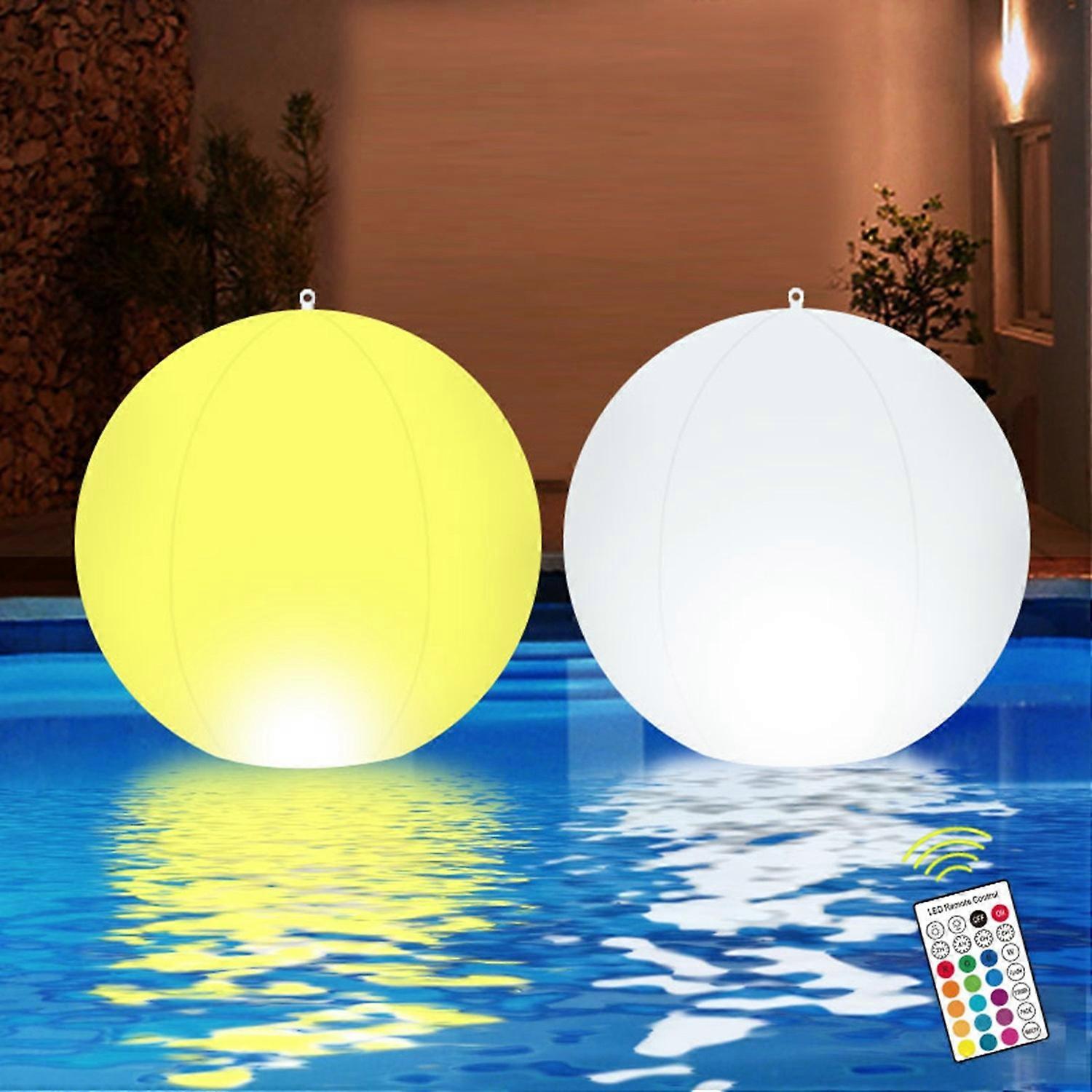 Feature: 1. Solar Powered and Energy Efficient: This floating ball light harnesses the power of the sun to charge its built in lithium battery during the day, ensuring a sustainable and cost effective lighting solution for your pool or garden. 2. Water Resistant and Sturdy: With an IP68 water proof rating, this pool light can safely float on water without any risk of damage, making it ideal for use in pools or any outdoor setting. 3. Convenient Remote Control: The included remote control allows you to easily adjust between 16 static colors and 4 dynamic lighting effects, and adjustable brightness levels. You can also set timers for 2, 4, 6, or 8 hours to suit your needs. 4. Long Lasting Battery Life: After a full 6-8 hours of charging, the LED light can provide up to 16 hours of continuous illumination, ensuring that your pool or garden remains beautifully lit throughout the night. It will automatically light up at night. 5. Wide Application: In addition to being placed on the ground or floating in the pool, this 34cm diameter LED light with a hook can also be hung in trees, on fences, or around your outdoor space to create a magical ambiance, adding charm to any setting. Specification: Specifications: Solar Panel: 2V/260mA Panel Size: 70 * 55mm Light Source: 3pcs 5050RGBW LED Light Color: RGBW 16 static colors Luminous flux: 80-120lm 4 Lighting Modes: Flash, Strobe, Fade, Smoothness Timer: 2/4/6/8H Battery Capacity: 1.2V/600mAh Remote Control Battery: 3V/150mAh, CR2025 Charging Time: 6-8 hours Working Hours: about 16 hours Quantity: 2pcs Material: PVC Color: White Inflated Diameter: 34cm/13.38in Package Size: 18.7*16.5*1cm/7.36*6.49*0.39in Package Weight: 590g/20.81oz . Package List: 2 * Floating Pool Lights 1 * Remote Control