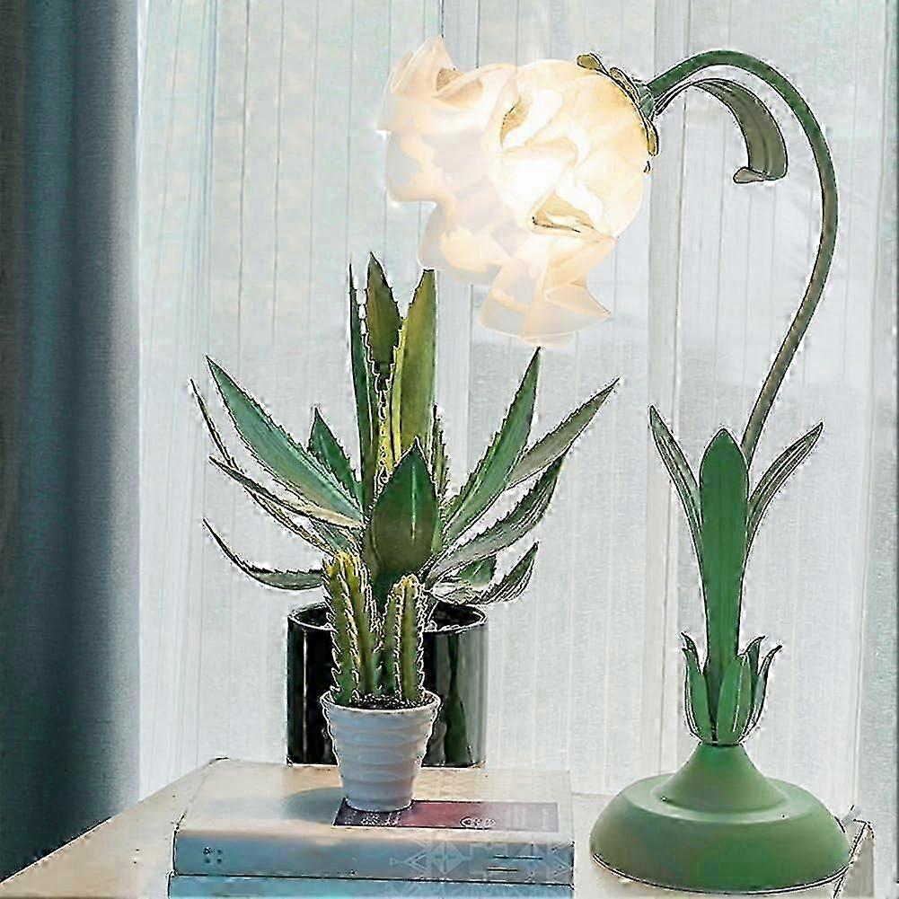 Flower Lamp, 3 Color Changing Night Lamps, Vintage Table Lamp with Floral Glass Shade, Metal Leaf, LED Desk Lamp for Living Room, Bedroom, Bedside