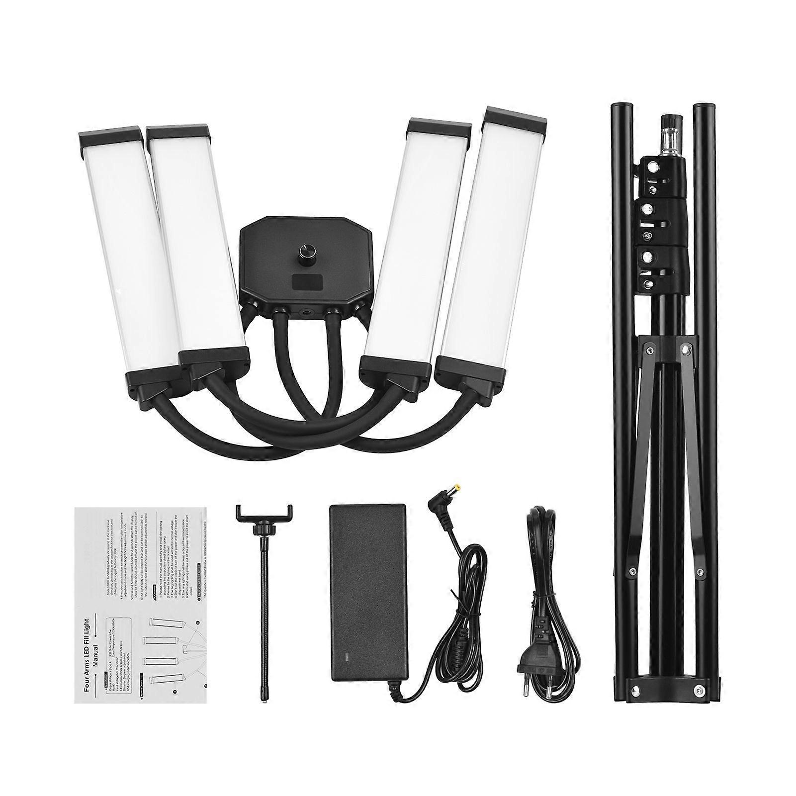 Flexible 4-Arms LED Video Light Photography Fill Light 3200K-5600K Dimmable with Phone Holder + 2M/78.7in Metal Light Stand + Carrying Bag for Live St