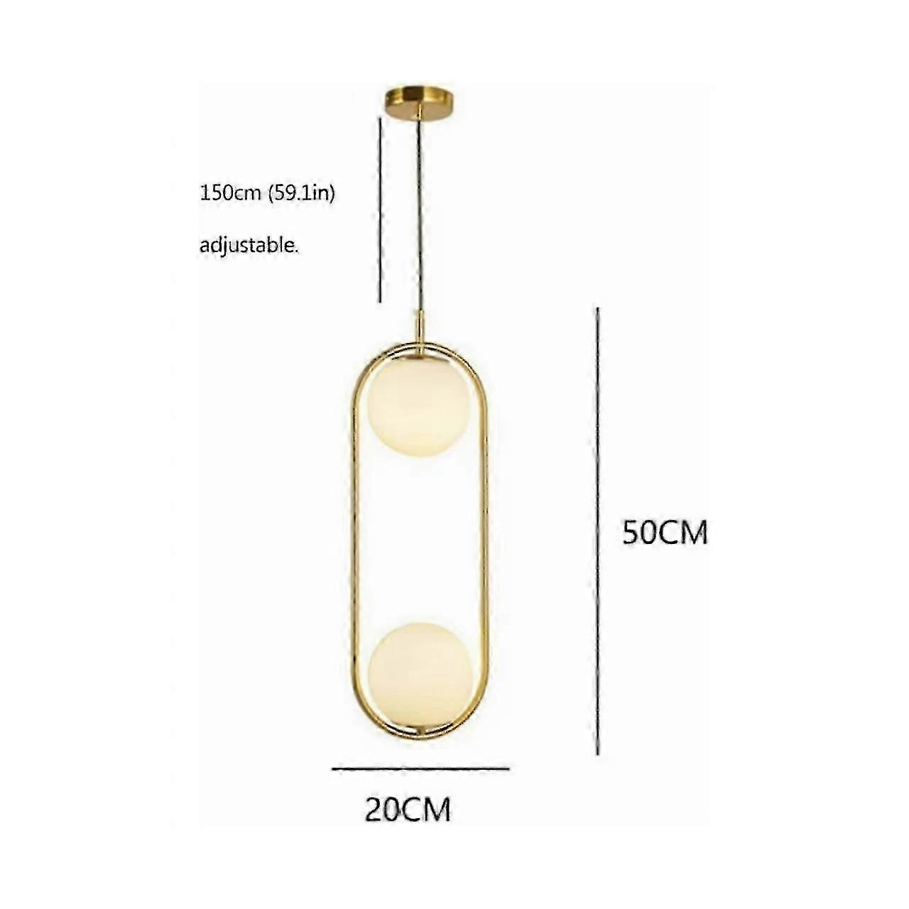 Modern gold pendant light with adjustable hanging cord for kitchen, dining room and bedroom 1. Creative design: simple and generous without losing the exquisite creative modeling, designed for quality of life and enhance the beauty of home fashion 2.Material: high transmittance glass lampshade, selected high temperature glass lampshade, thick and bright, even and soft light. Wrought iron lamp body, precision forged, sturdy and not easily deformed, processed by many complex procedures, durable. 3. Height adjustable: 150CM the length of the chandelier can be adjusted to meet different ceiling heights. 4. Wide range of uses: the chandelier is perfect for illuminating indoor areas such as rooms, kitchens, neighborhoods, entrances, bars, workshops, buildings, halls and more. 5.LED BULBS INCLUDED: We have included 2 energy saving LED bulbs so you can start using it right away. No need to worry about finding the right bulb 6.Easy to install: to save your time and energy, the package includes mounting accessories, you can quickly fix the chandelier on the ceiling. Voltage: 220V Color: gold Size: 20 x 50CM Suspension line length: 150 cm (height adjustable) Light source type: LED Lamp base specification: E27 Light source power: 5W x 2 Color temperature: white light Package content: 1 x pendant light,2 x 5W white light bulb Note: Due to the light and screen setting difference, the item's color may be slightly different from the pictures. Please allow slight dimension difference due to different manual measurement. Sold by-DIMEANI official store