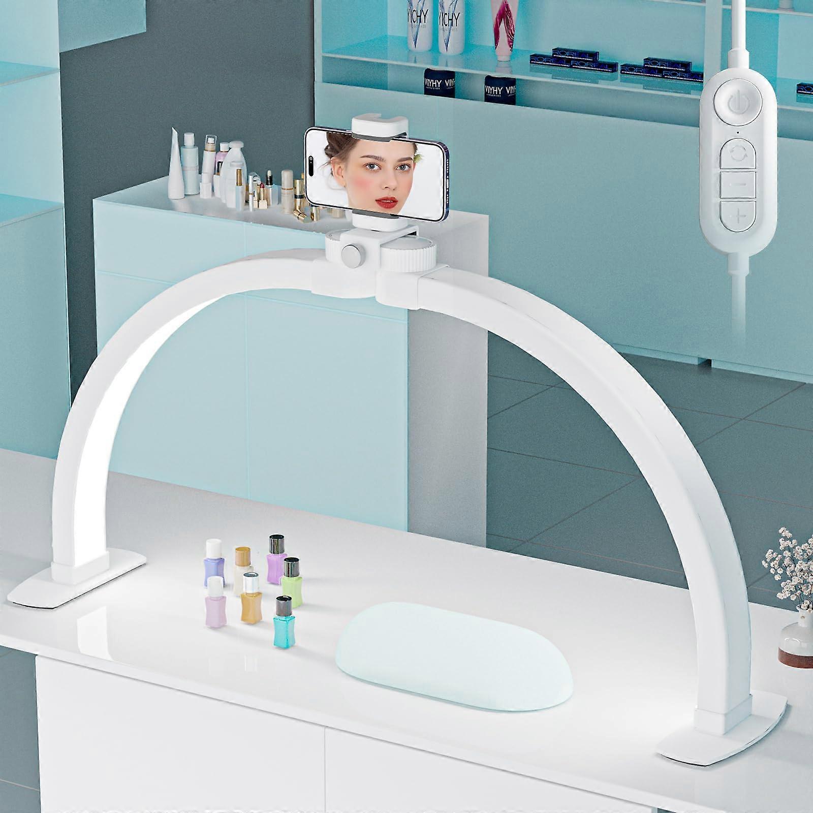 Foldable Half Moon Lamp for Nail Desk, 23 Inch Led Nail Tech Desk Lamp, with Phone Holder, Eyelash Extensions, Tattoo, Eyebrow