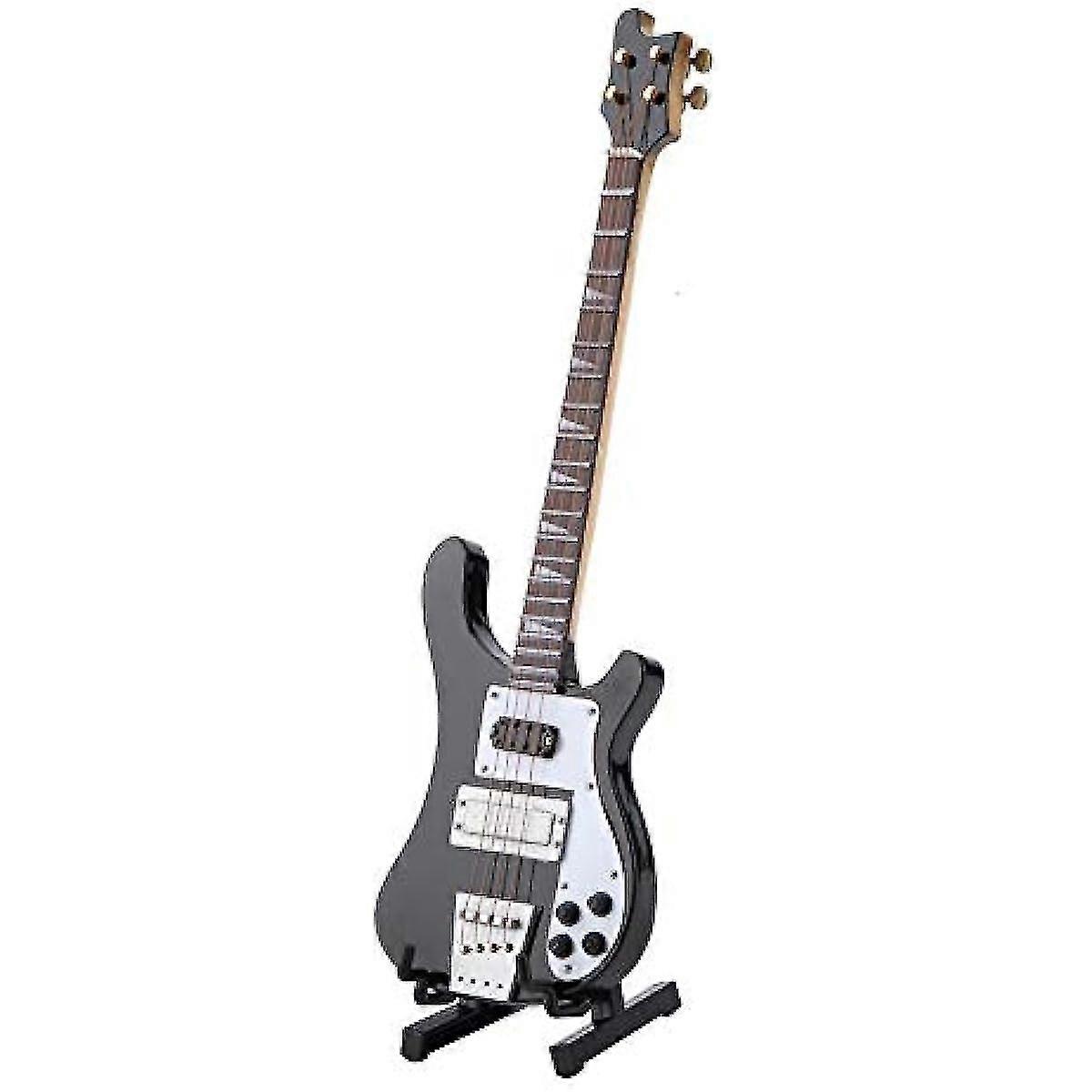 Miniature Guitar With Stand Replica Ornament Black Bass Guitar Replica Model Case Decoration Gift