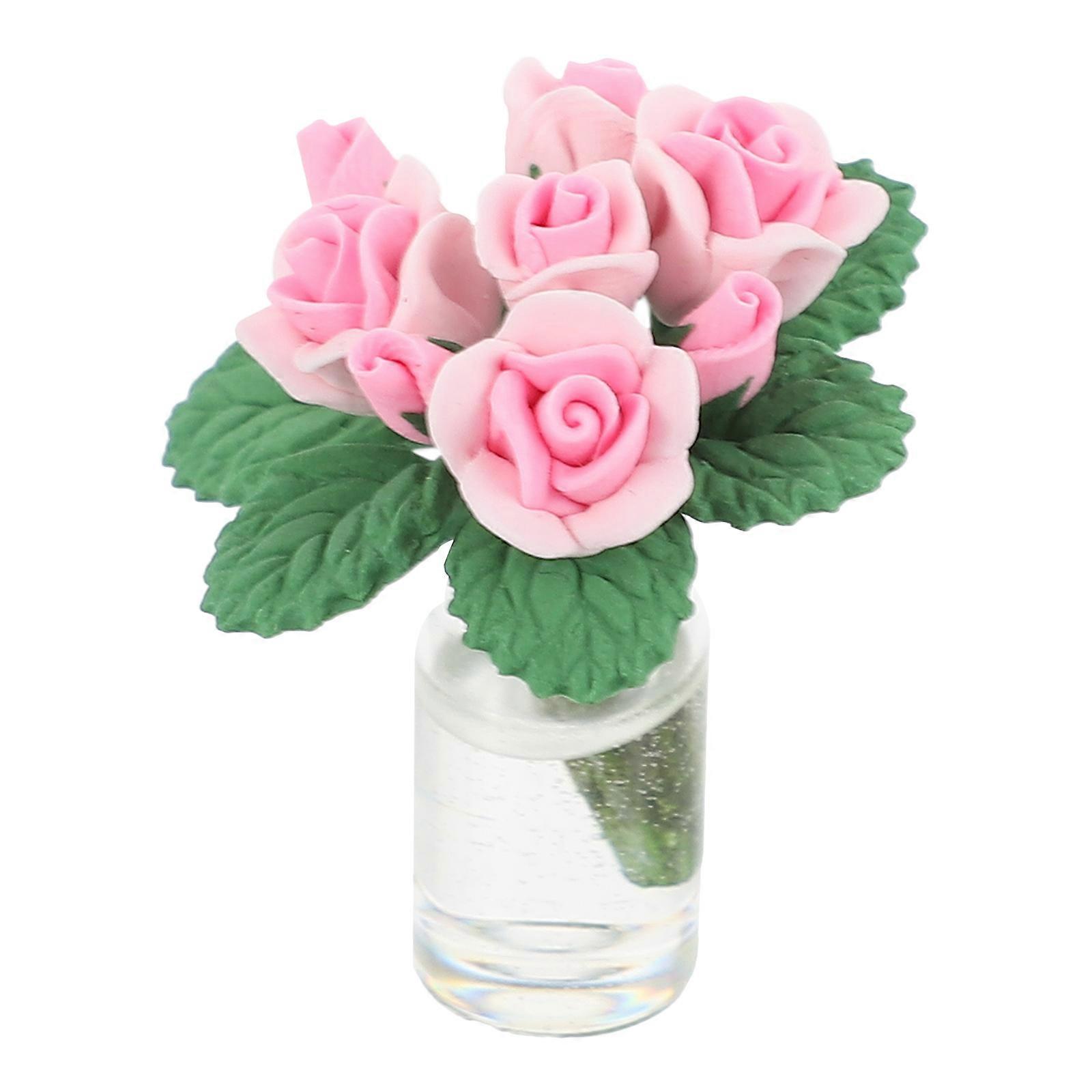 Miniature Pink Rose Flower Pot Scale Model Garden Decor Dollhouse Accessory Cute Craftsmanship