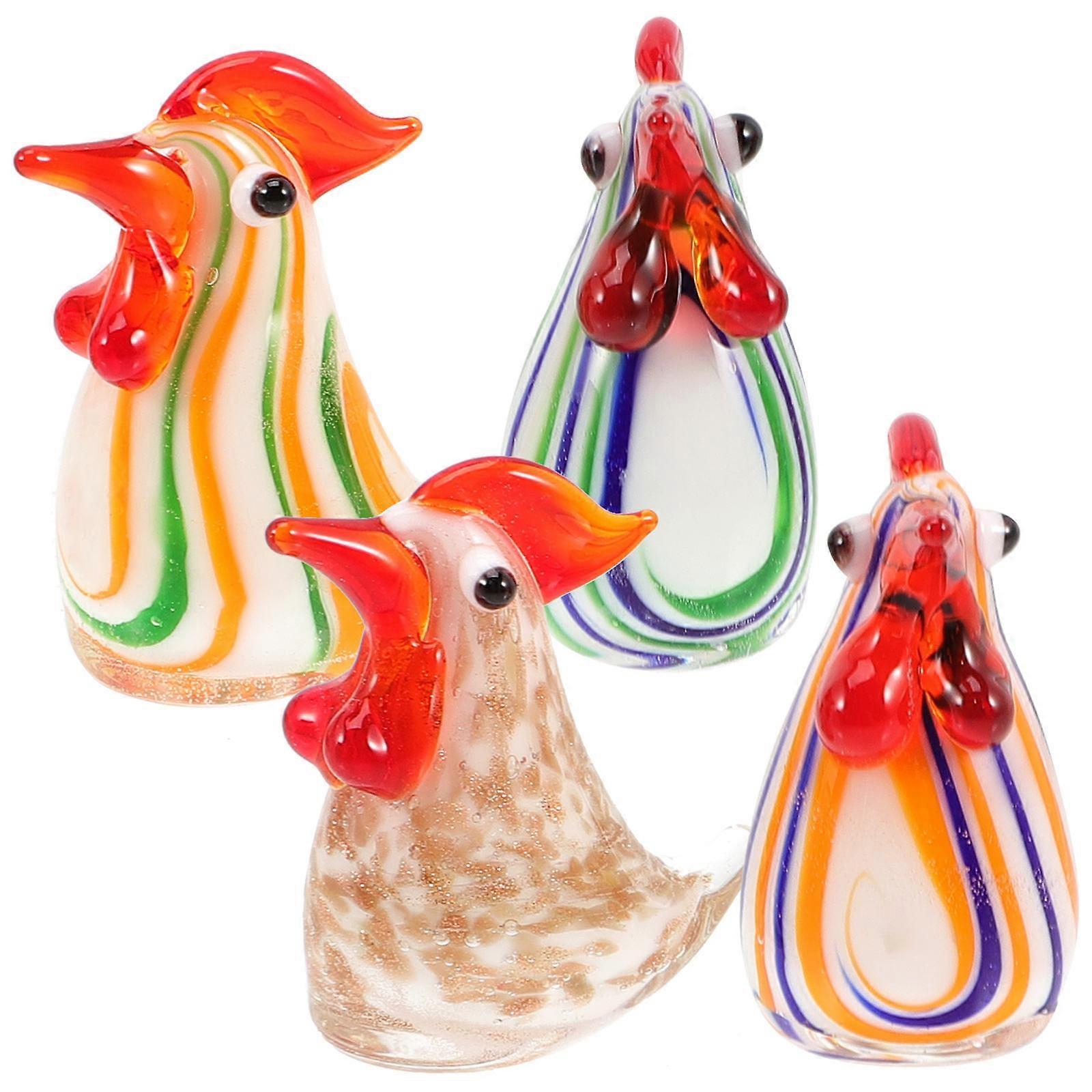 Miniature Chickens Glass Chicken Figurine Farm Animals Action Figures Decoration Living .4x2.3cm 4Pcs