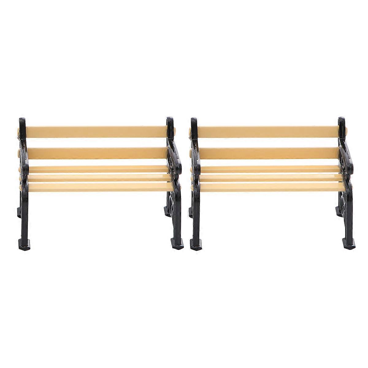 Miniature Dollhouse Garden Stool Black For Indoor Play Model Landscape 2Pcs Imitation Park Bench Retro Style