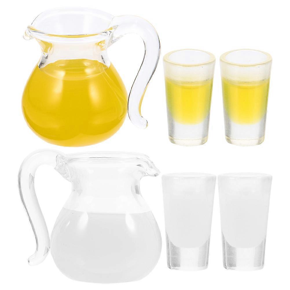 Miniature Dollhouse Juice & Milk Pitcher Set with Kettles and Cups – Lifelike Kitchen Pretend Play Accessories for Mini Room Decoration