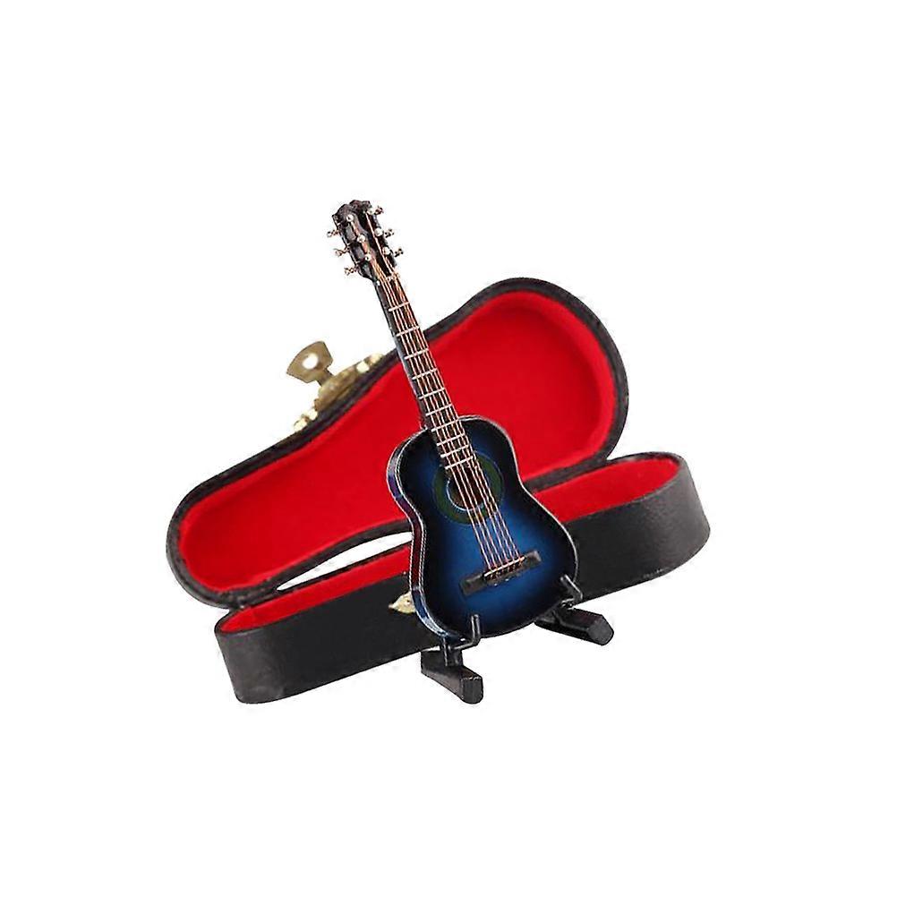 Miniature Blue Wooden Guitar Craft Decoration with Storage Box Stand for Graduation, Home Decor, and Dollhouses
