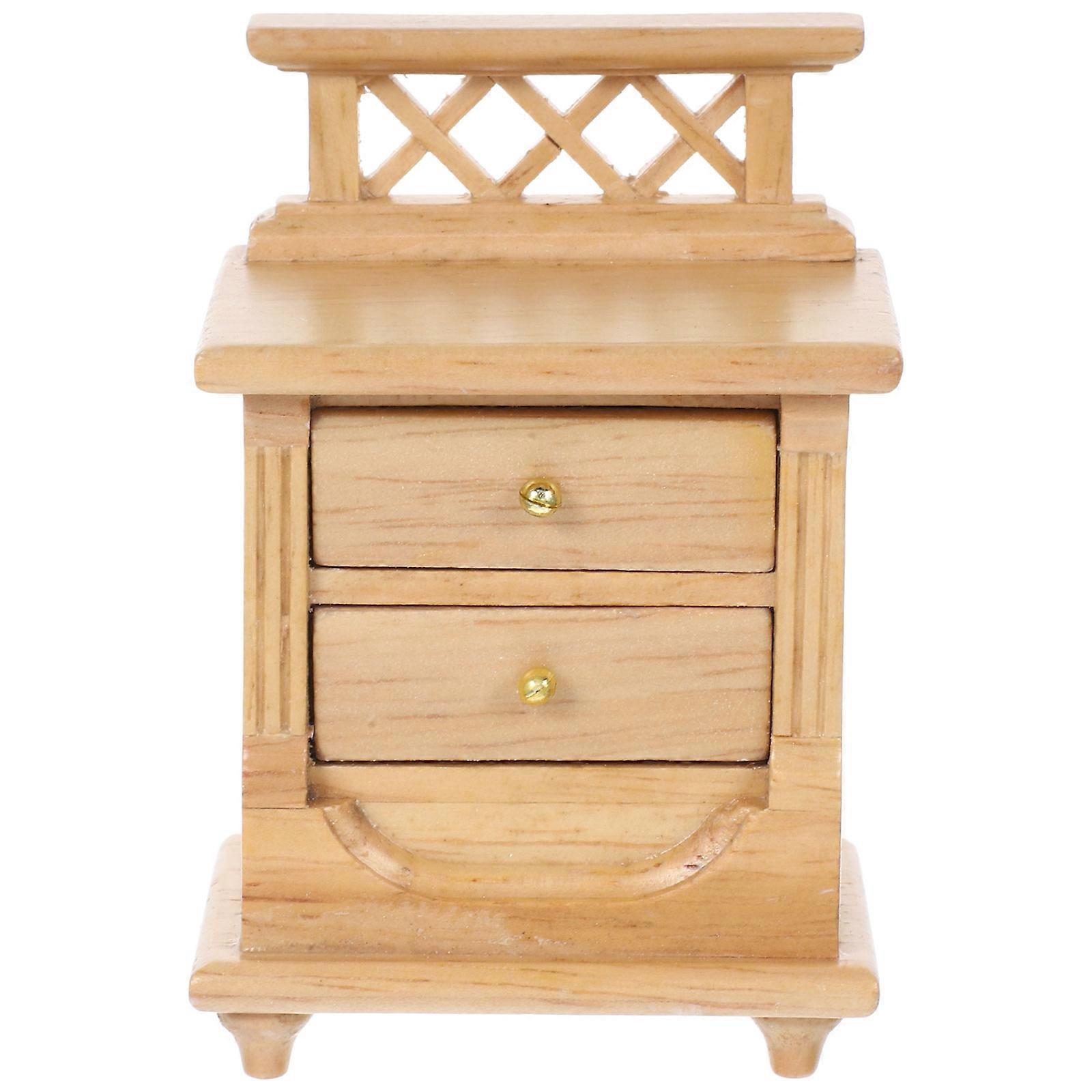 Miniature Model Furniture Doll House Accessory Double-Tiered Sideboard Khaki Wood 1Set