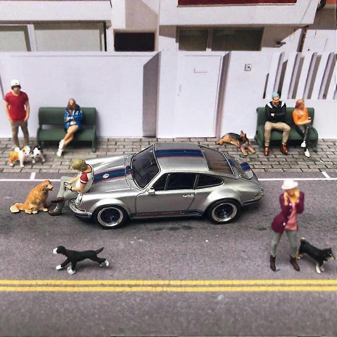 Miniature 1:64 Diorama Figure Dog Road Scenario Home Decor Accessories White Poodle