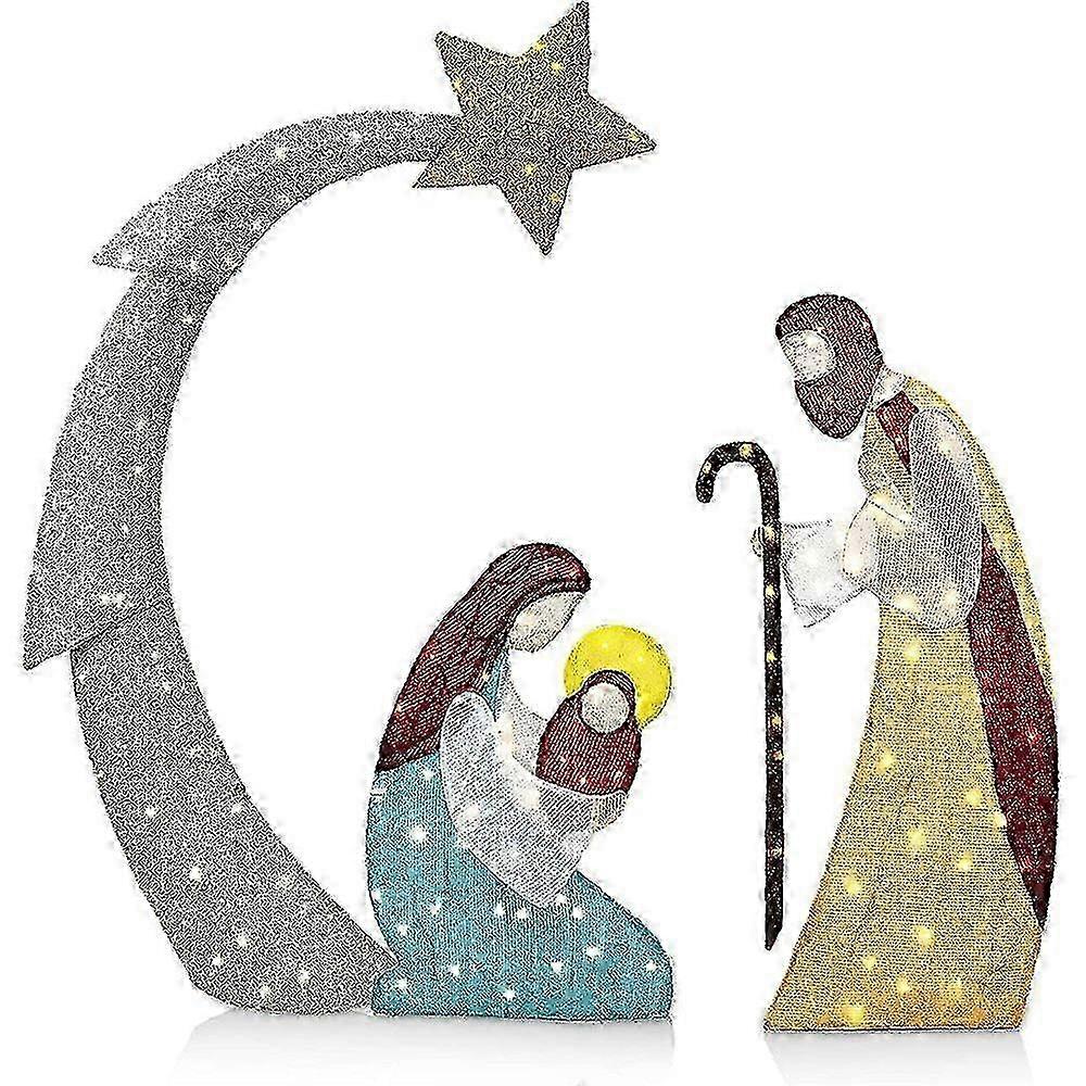 Lighted Christmas Decorations Outdoor Nativity Set, 2023 Light Up Nativity Scene Silhouette Xmas Decor for Yard with Lights Stakes