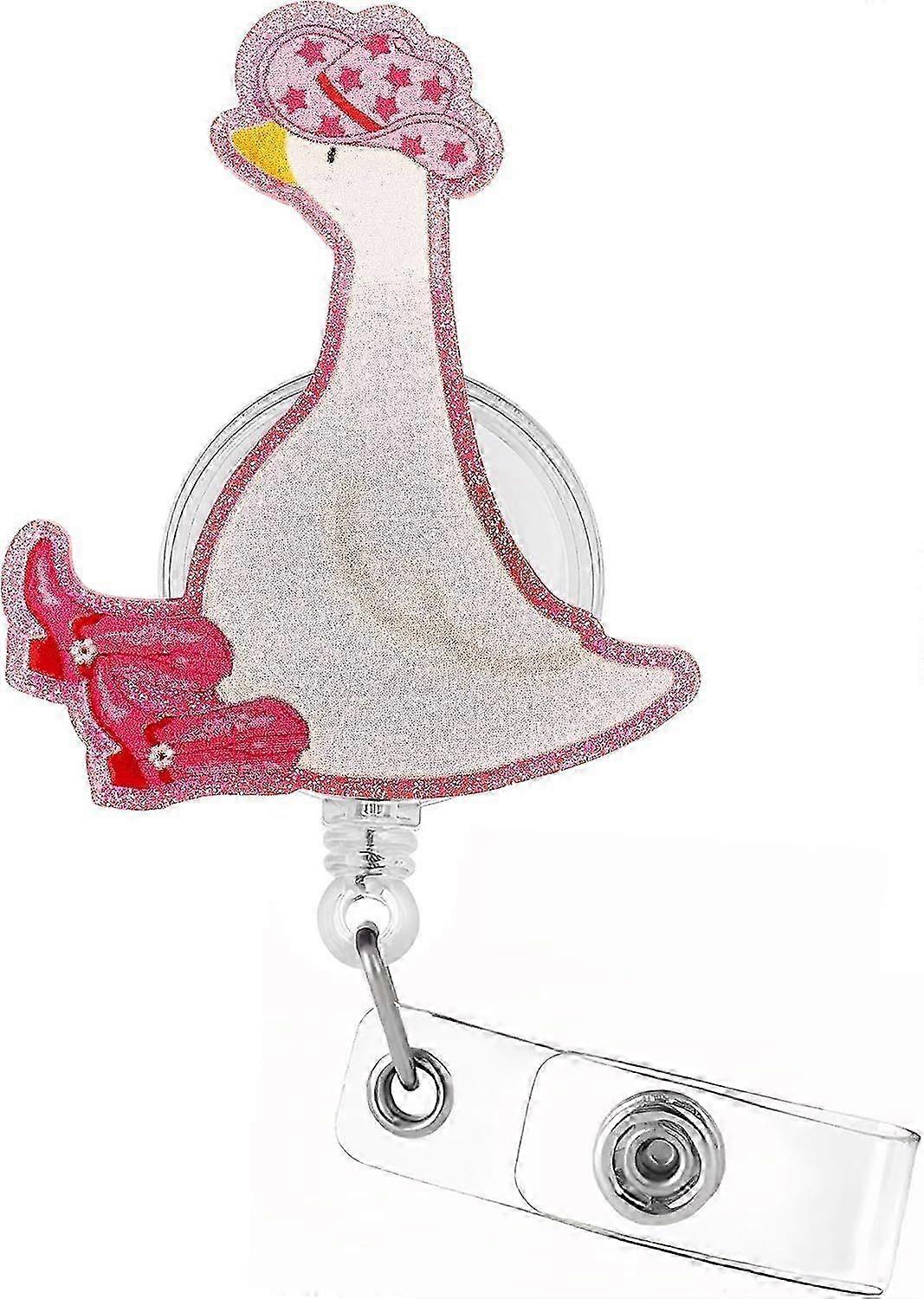 Funny Goose Badge Reel, Pink Glitter ID Card Holder with Retractable Clip, Cute Fun Design