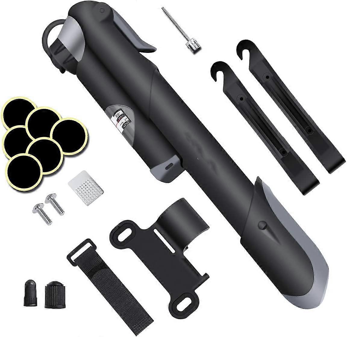 Bike Pump With Gauge, Perfect Complete Mini Bike Pump, Ball Pump With Needle, Glueless Patch Kit, Cycle Valve Cap And Frame Mount(1 Set)