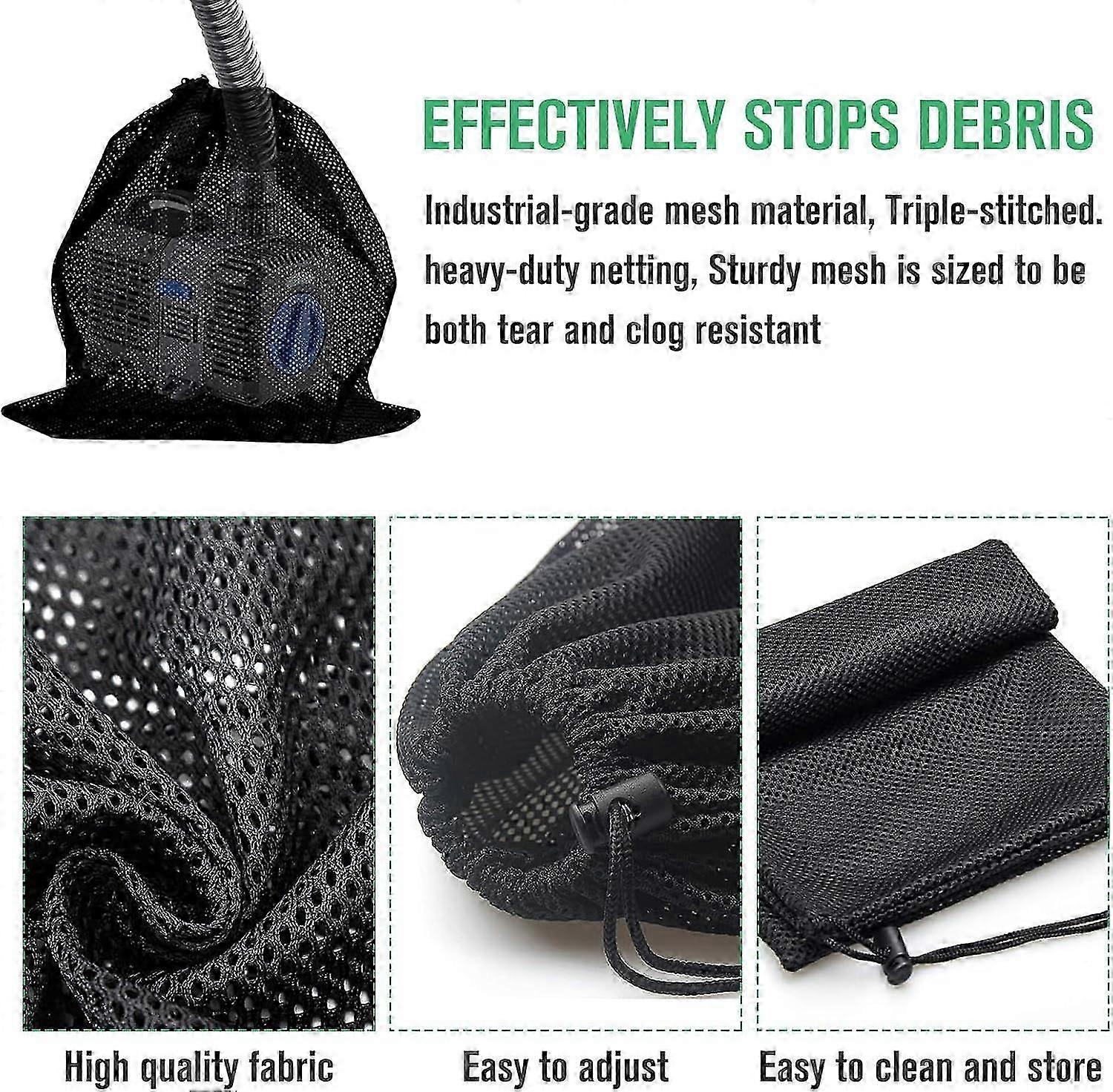 Pump Barrier Bag Pump Filter Mesh Bag Pond Pump Filter Bag with Drawstring Household Water Pump Pond Filter Accessories (45 * 45cm, Black)