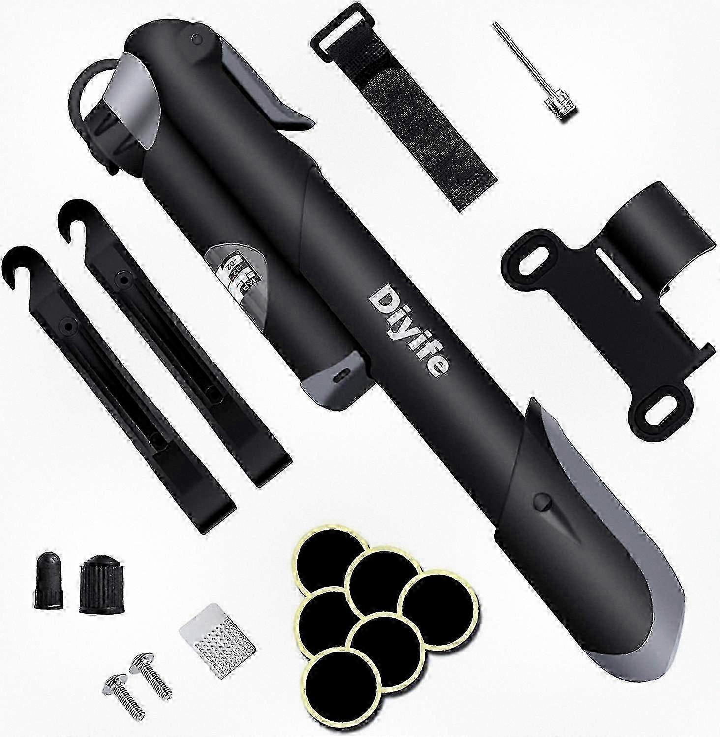 Mini Bicycle Pump with Pressure Gauge, 120 Psi, Complete Set for Various Brands Including Ball Pump with Needle, Glueless Patch Kit, Cycle Valve Caps,