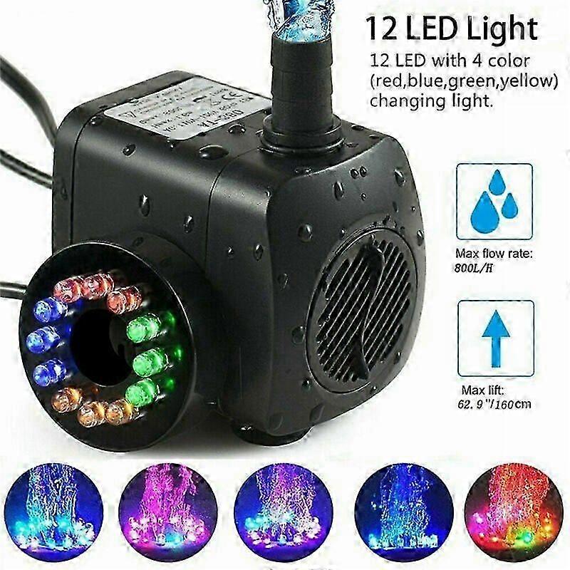 Fountain pump 15w 800l/h, pond pump, fountain pump, garden pump, fountain pump with 12 LEDs-2025