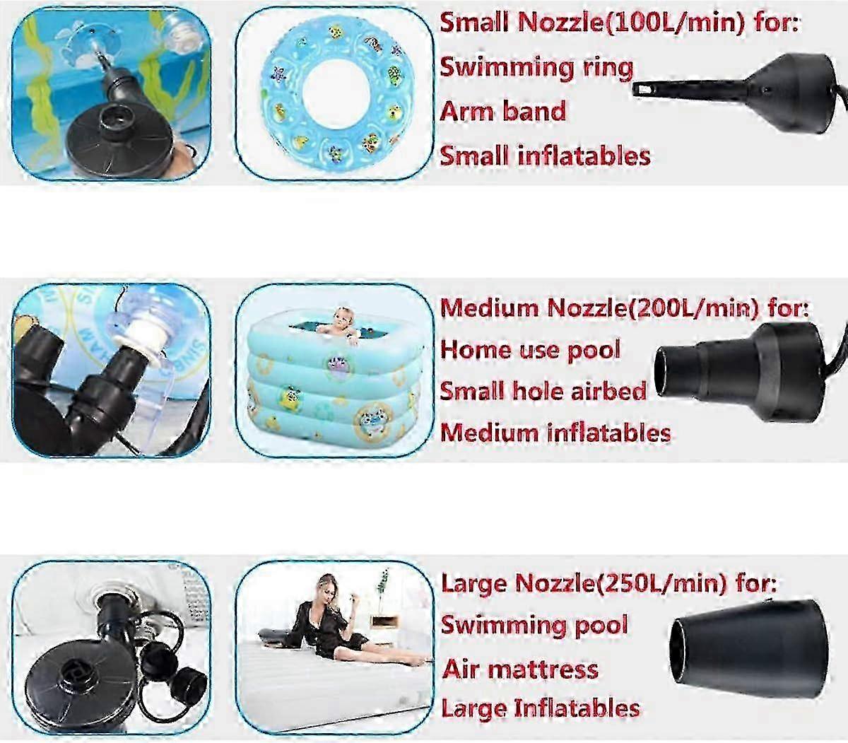 Electric air pump for swelling, 3 nozzle for air mattress pump pump pump electric pool air pump bundle pump AC pump 130W