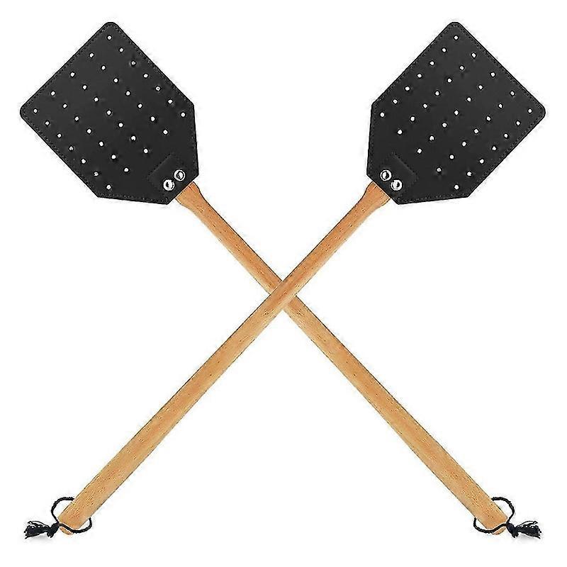 Leather Fly Swatter For Indoors/outdoors,duty Flyswatter With Walnut Wood Handle 19.7inch Long Fly Swatted Manual 2 Pack