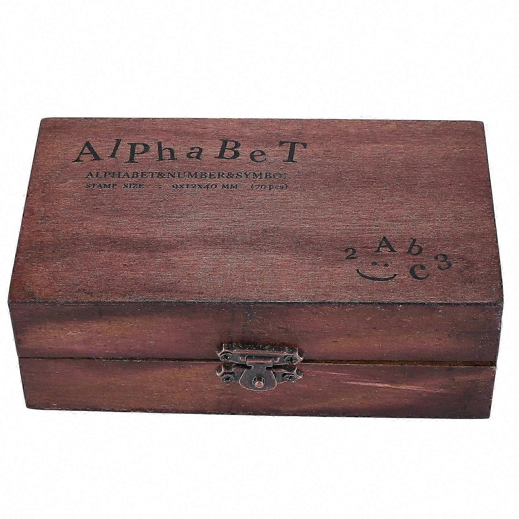 Rubber Stamp Alphabet Number Symbol Wooden Box Set Print Style Wood Letter 70PCS
