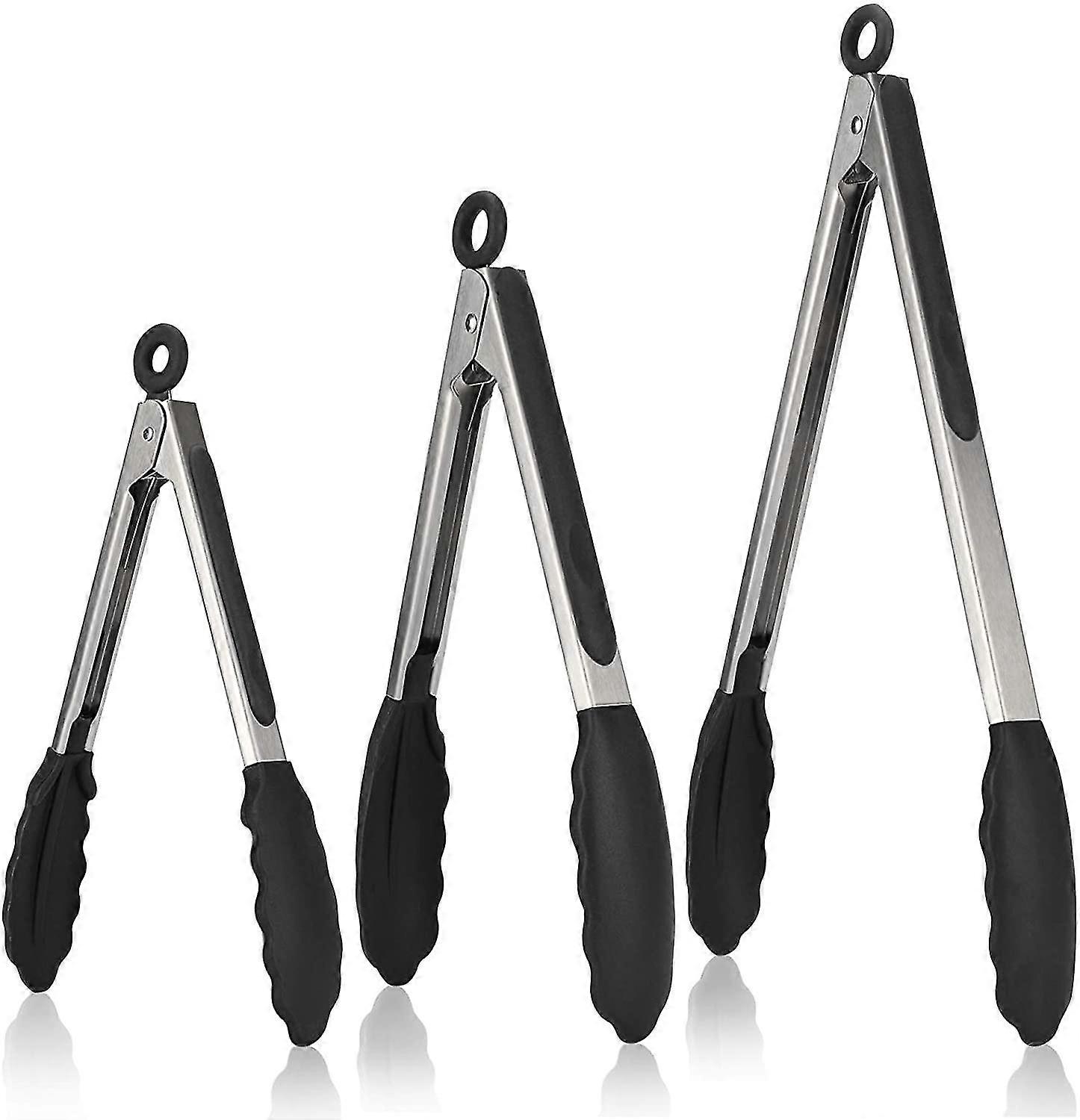 Kitchen Tongs Set Of 3 Stainless Steel Barbecue Tongs Kitchen Utensils With 315 Heat Resistant Sili