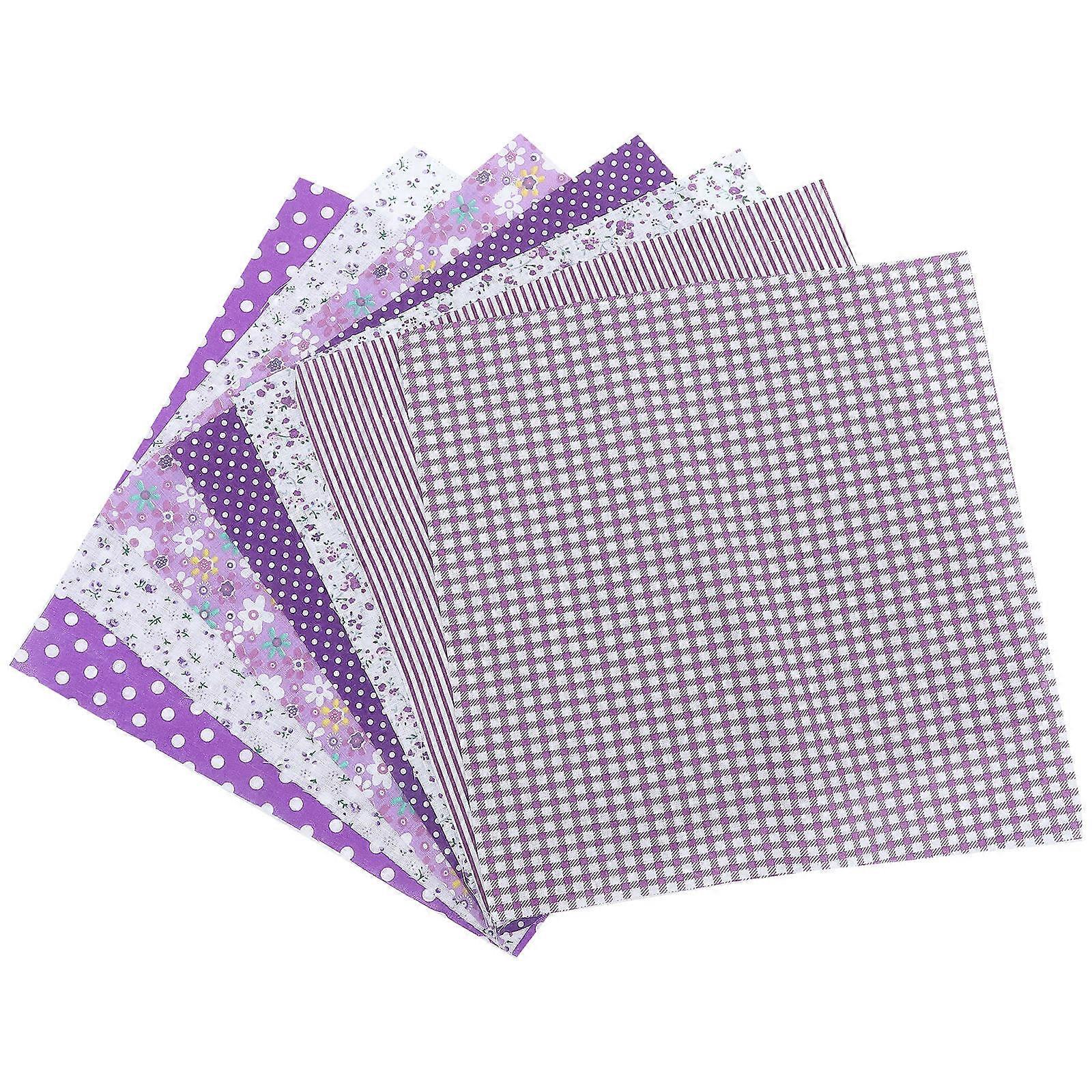 Printed Floral Cotton Twill Fabric 7Pcs DIY Patchwork Quilting Material For Kids Clothing Purple Color