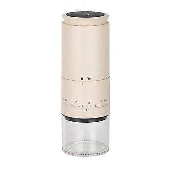 Compact and USB Rechargeable: Designed for mobility, this coffee grinder is compact and perfect for travel. It comes with a powerful lithium battery that 25 grams per charge and makes 25 cups of coffee per charge. Conveniently rechargeable via USB. Smart Touch Control Panel: Equipped with an intuitive touch panel for simplified operation. Just one tap wakes up the machine, displays the battery level, and starts the grinding process. It automatically stops when grinding is complete, ensuring effortless and efficient operation. 38 Precision Grind Settings: Customize your coffee grind with 38 settings from coarse to fine. This versatility ensures optimal extraction and flavor for a variety of brewing methods, including espresso, French press, and cold brew. Slow Grinding for Superior Flavor: With ceramic conical burrs, it slowly to prevent heat buildup, preserving the natural flavor and aroma of the coffee beans. This ensures a richer, more aromatic coffee experience. Easy Cleaning: The grinder is removable for easy cleaning. Clean the components (except the main unit) with water and use the included brush to remove any remaining coffee grounds. Made of ABS for long-term use. Colour:Milk tea color Material:ABS Package Contents: 1x Automatic coffee grinder Only the above package content, other products are not included. Note: Light reflection and different displays may cause the color of the item in the picture a little different from the real thing. The measurement allowed error is +/- 1-3cm.