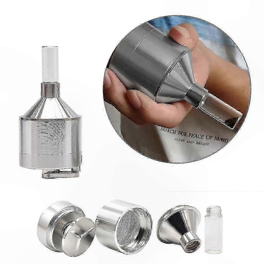 Handheld Metal Powder Grinder with Funnel and Glass Storage Bottle
