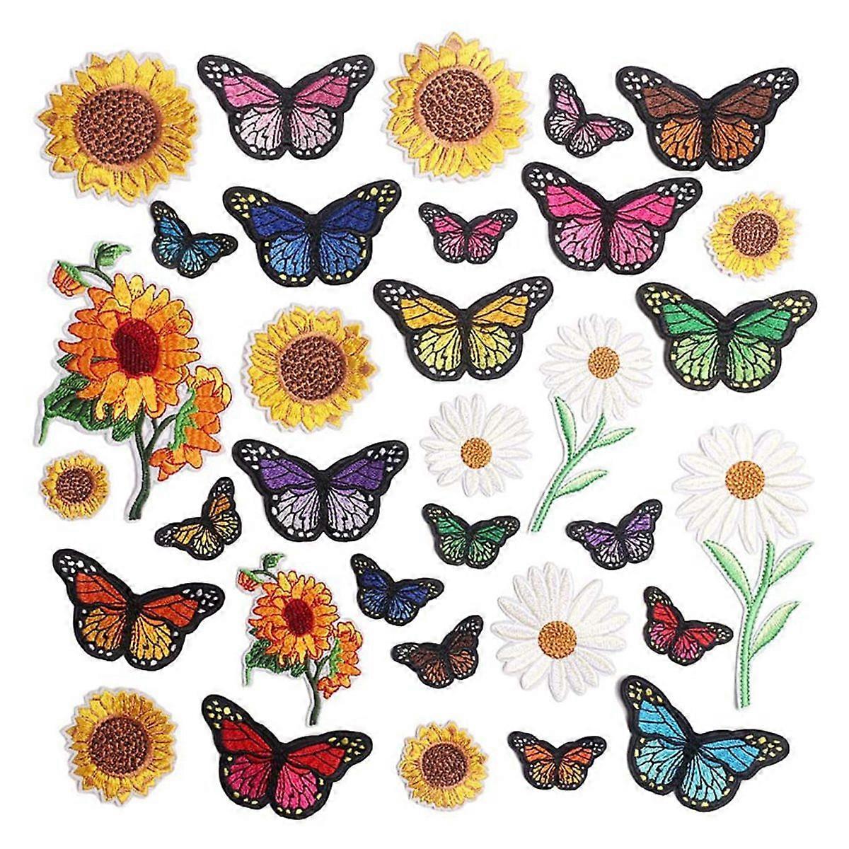 Embroidered Flowers Iron on Patches for Clothing,33PCS Sew on Sunflower Butterfly Applique for Clot