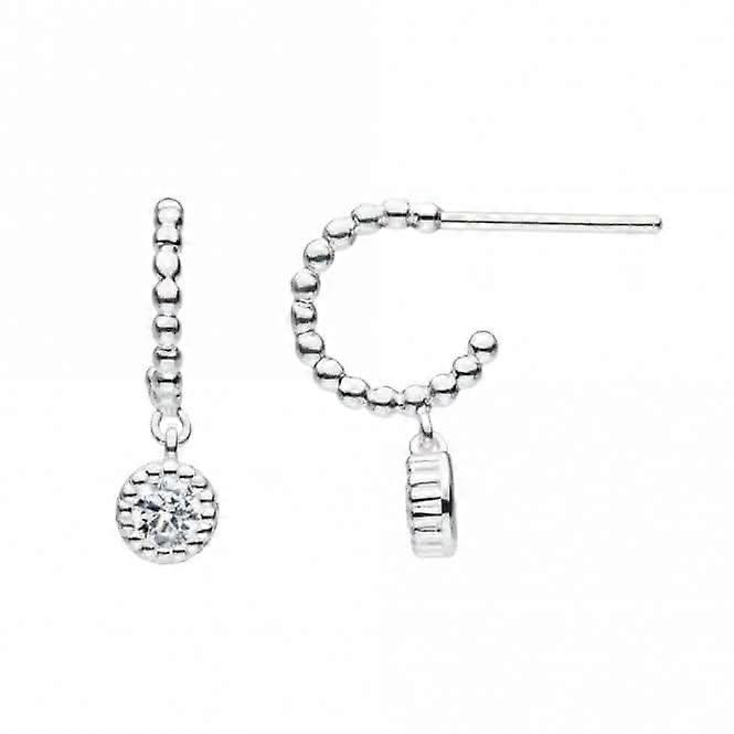 Beaded with Zirconia 11mm Stud Hoop Earrings 5375CZ