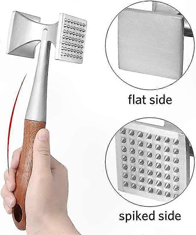 Kitchen Mallet, 2-in-1 Meat Tenderizer with Wooden Handle, Heavy Duty Zinc Alloy Construction, 26CM Steak Hammer for Home Cooking