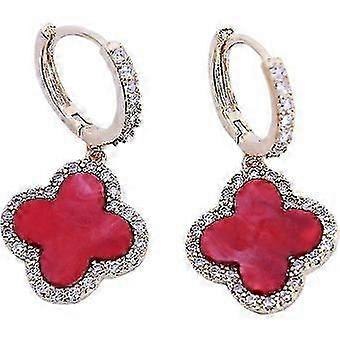 Gold Plated 925 Sterling Silver Gem Hoop Earrings Clover Designs with Crystal Charms Crystal Natural Gemstone Dangle Earrings for Women_