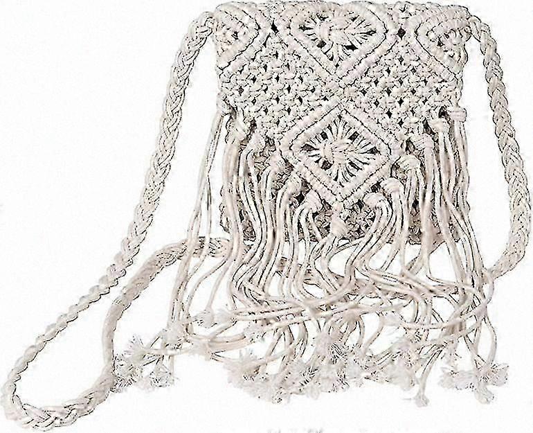 Hemmed Crochet Women Cross Body Bag Bohemian Summer Beach Shoulder Bag,beige