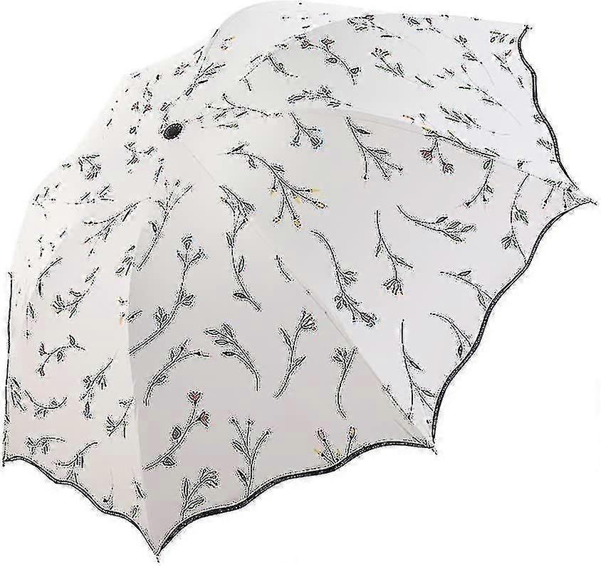 Ladies Sun Protection Parasol With Storage Bag 3 Foldable Double Roof 8 Ribs