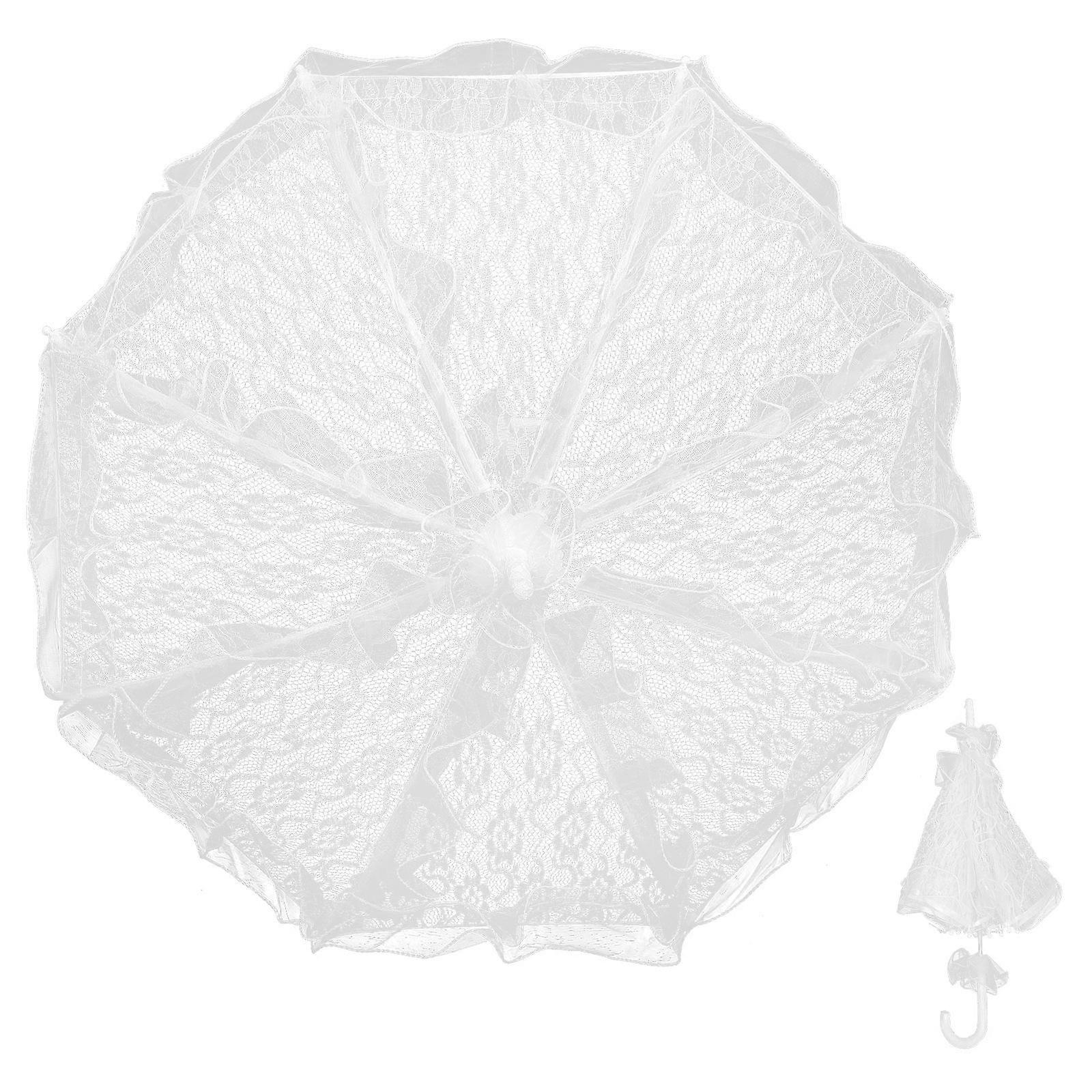 Stylish Western Lace Parasol for Wedding Decoration White Elegant Handmade Photo Props Small Size