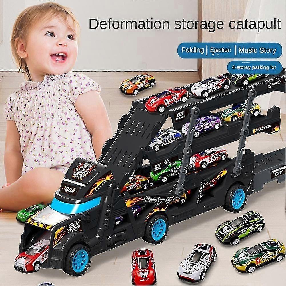Boxed Blue] 3-layer ejectable container truck with 6 iron cars (B) $ Toy car set car boy children's toy pull back alloy car ejection container