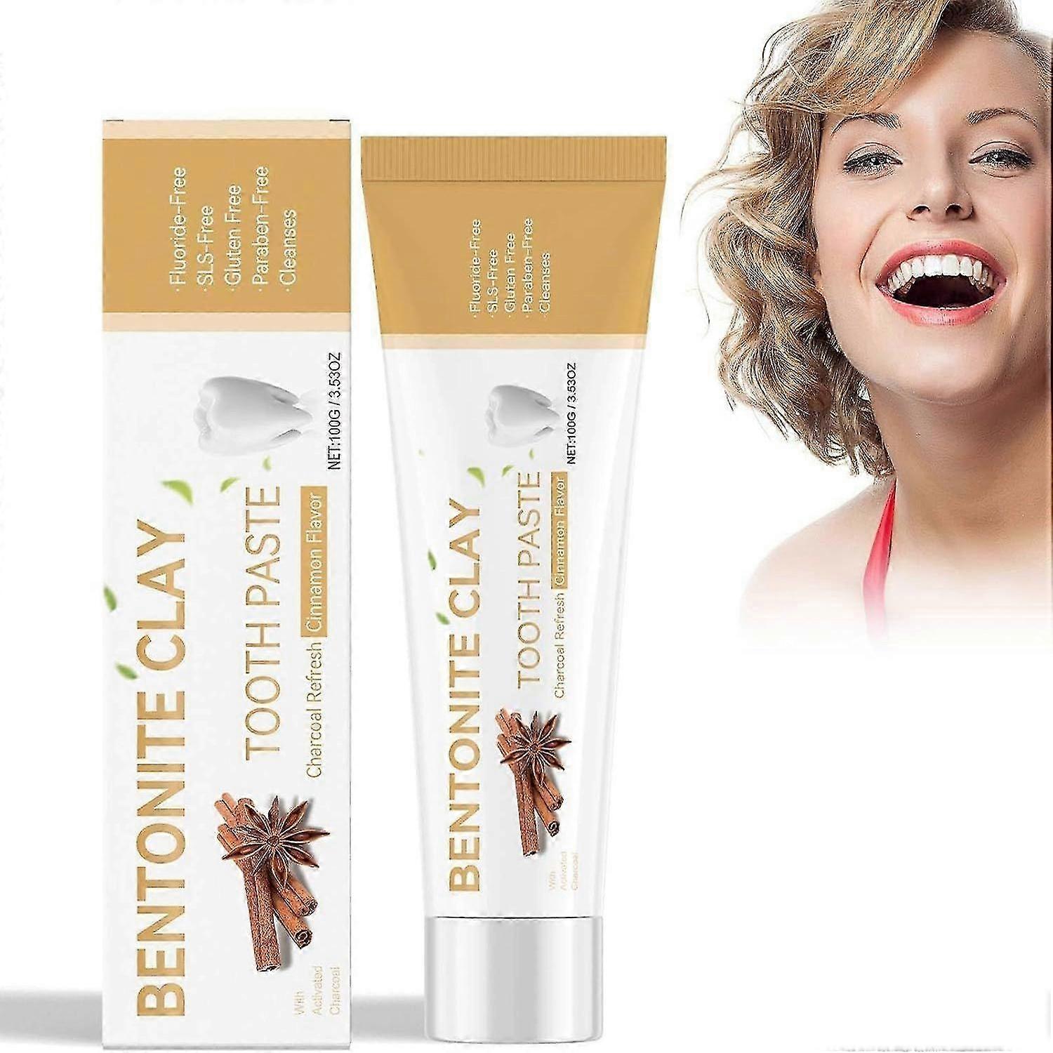 Bentonite Toothpaste with Cinnamon, 100g Activated Carbon Toothpaste White Teeth Toothpaste, Strengthens Gums Deep Cleaning Oral Care Toothpaste, Fres