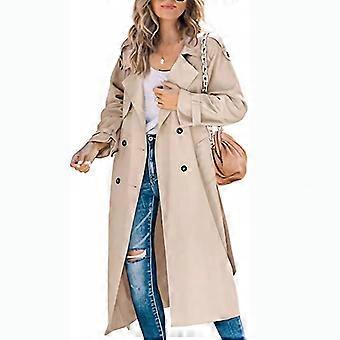 Women's Double Breasted Long Trench Coat, Windproof Classic Lapel Slim Overcoat