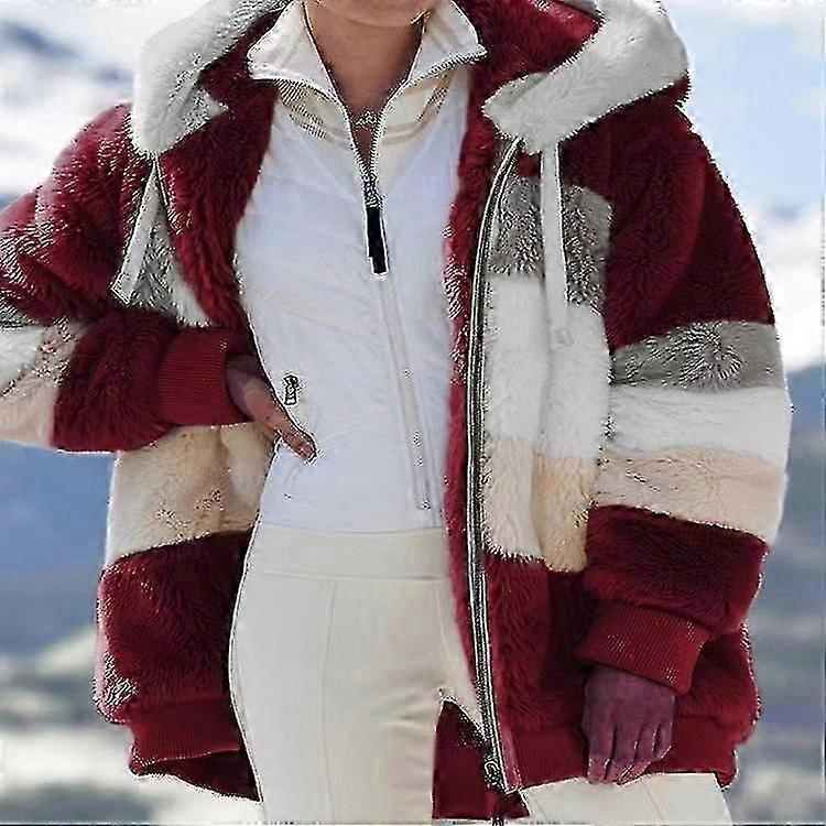 Warm Plush Hooded Coat with Zipper Pockets for Women - Loose Fit Autumn & Winter Jacket in Europe & America Fashion Style
